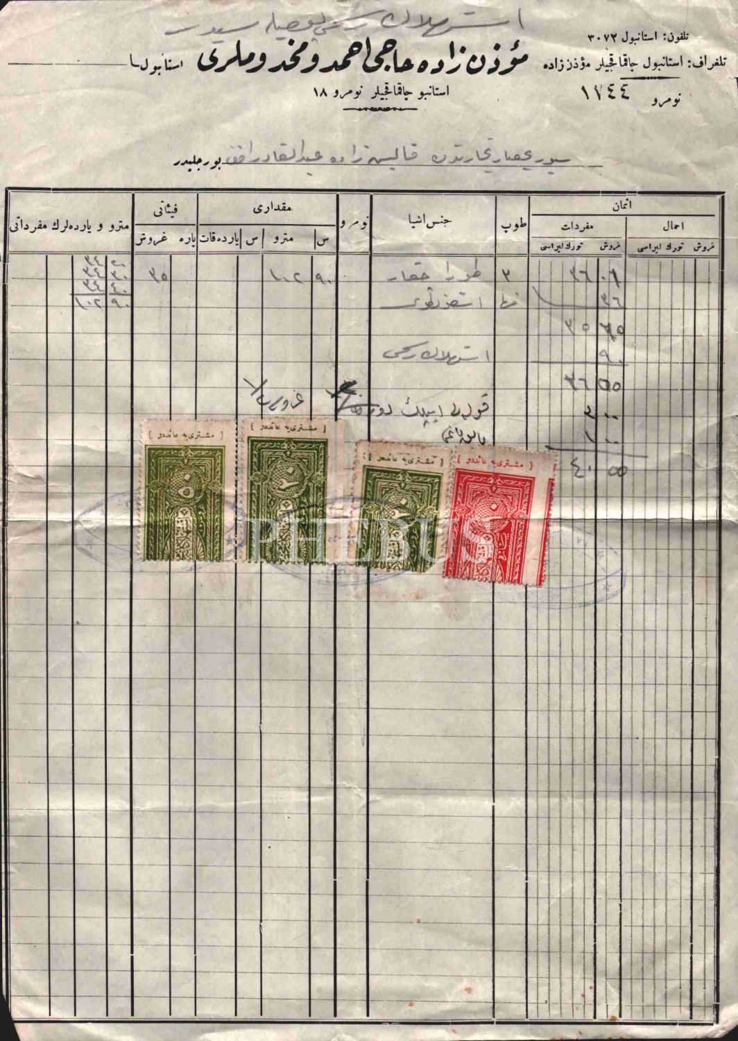 Müezzinzade Hacı Ahmed ve Mahdumları antetli fatura, 22x31 cm