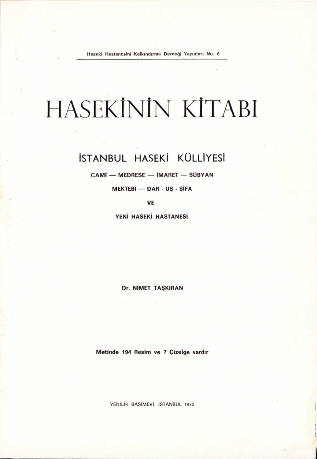 Hasekinin Kitabı, Dr. Nimet Taşkıran, İstanbul , 1972, Metinde 194 resim ve 7 çizelge vardır. 415 sayfa, 20x28 cm.
