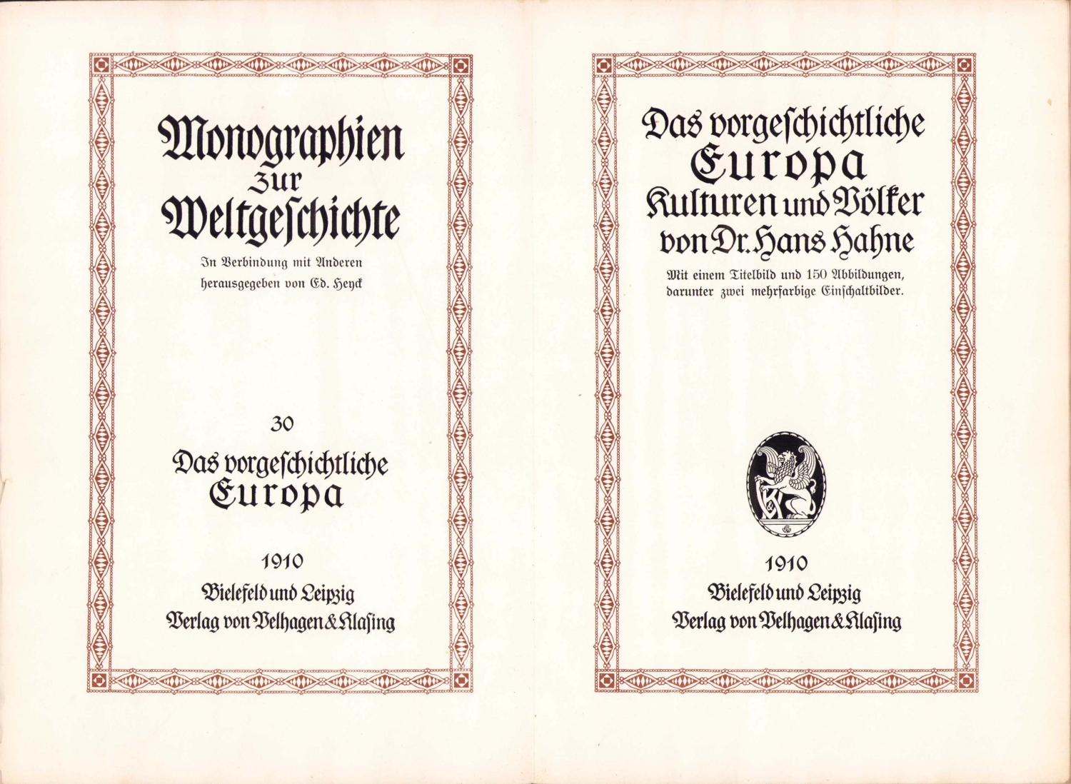 Das vorgeschichtliche Europa: Kulturen und Völker, Hans Hahne, Leipzig, 1910, Almanca, resimli, 130 sayfa, 16x24 cm.