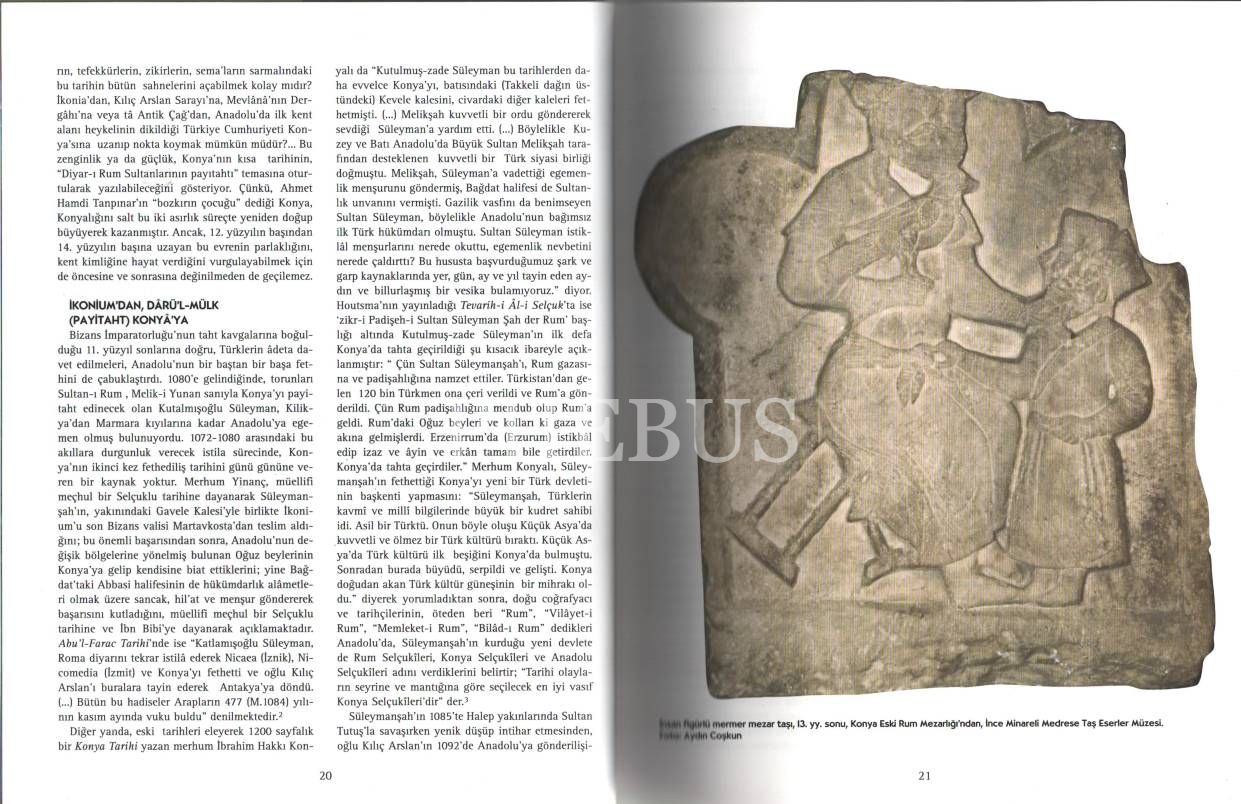 Konya´yı gezmk, Konya´yı görmek, büyük bir kültür mirasına ortak olmak demektir. Bu eser, geçmişi, bugünü ve geleceğe bakışıyla tam anlamıyla kendine özgü ve dinamik bir görüntü sergileyen Konya´yı tarihi, kültürü, mimarlığı, toplumsal yaşamı ve ekonomisiyle bir bütün olarak ele alıyor.