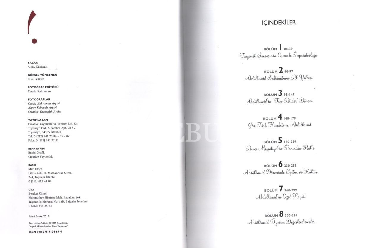 TANZİMAT´TAN II. MEŞRUTİYET´E İMPARATORLUK VE NESNEL TARİHİN PRİZMASINDAN ABDÜLHAMİD, Alpay Kabacalı, Denizbank Kültür Yayınları, İstanbul 2013, 320 s., 22x30 cm