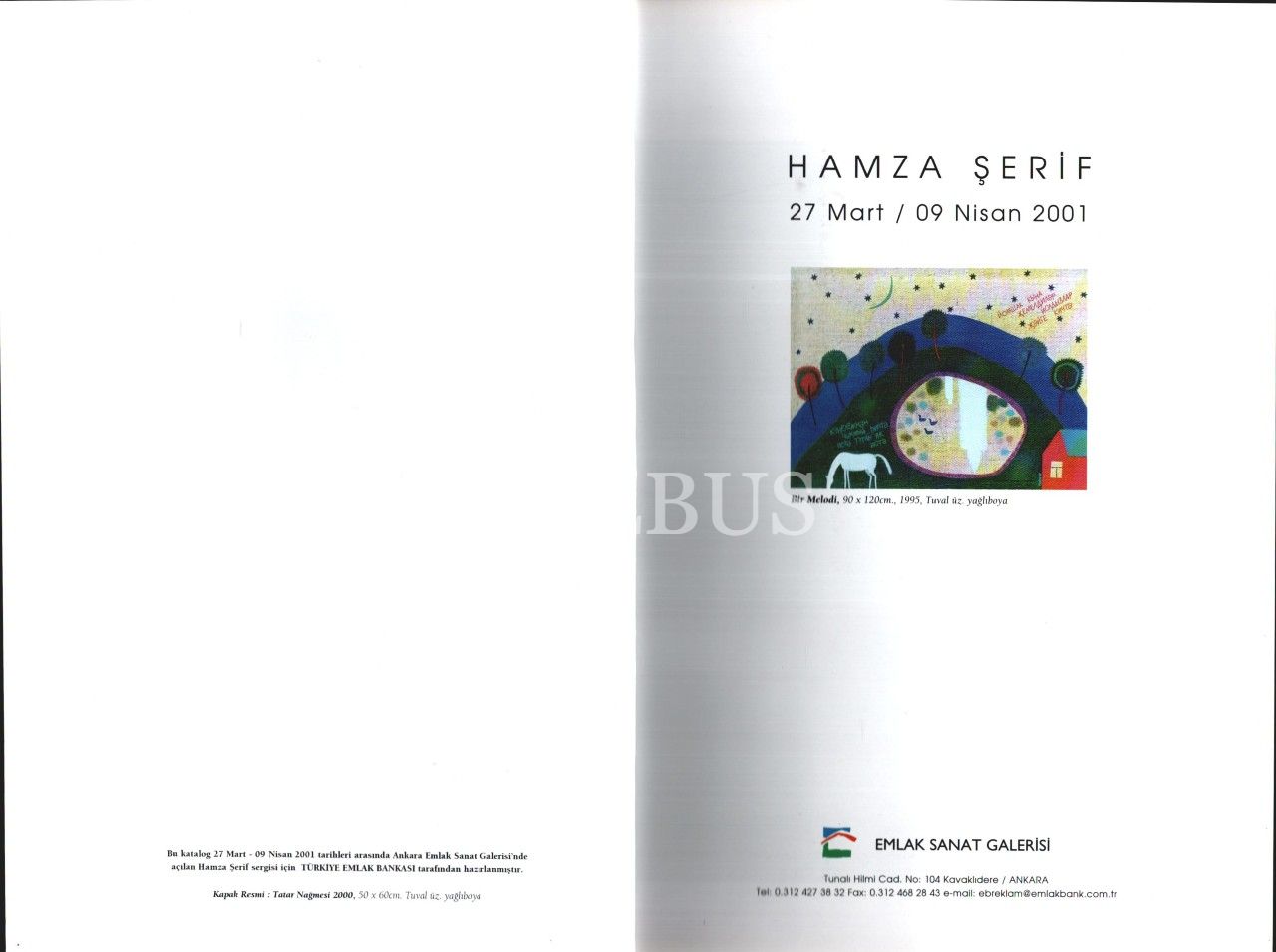 HAMZA ŞERİF RESİM SERGİSİ (27 Mart- 9 Nisan 2001), Emlak Sanat Galerisi, 32 s., 22x30 cm