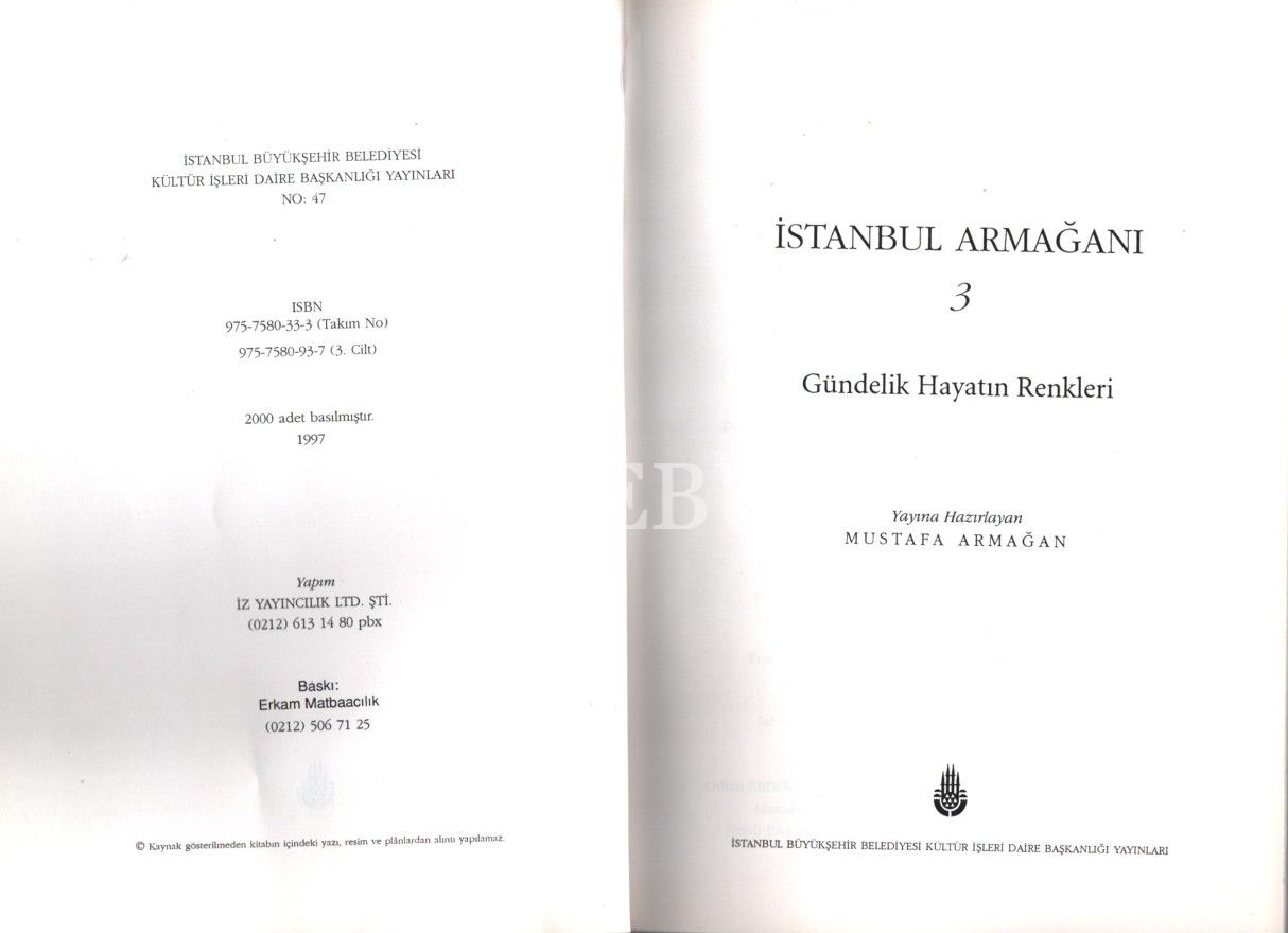 İSTANBUL ARMAĞANI, Mustafa Armağan, Seçil Ofset, 3 Cilt, 374 s, 23x16 cm