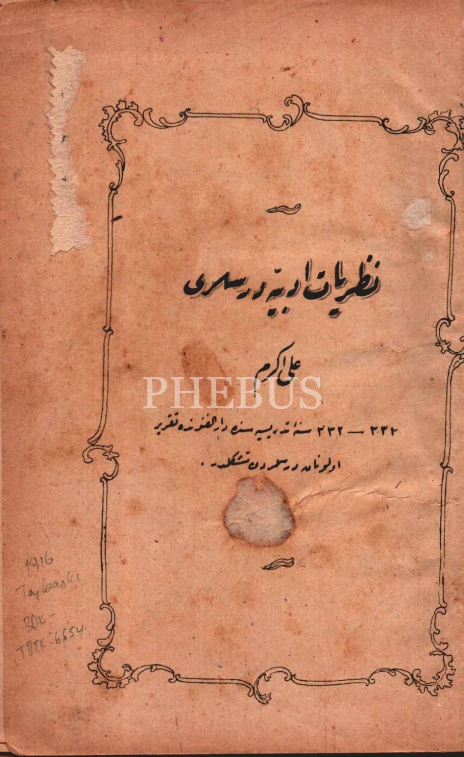 NAZARİYYÂT-I EDEBİYYE DERSLERİ (1331-32 Ders Senesi Darülfünun Ders Notları), Ali Ekrem, 496 s., 14x20 cm