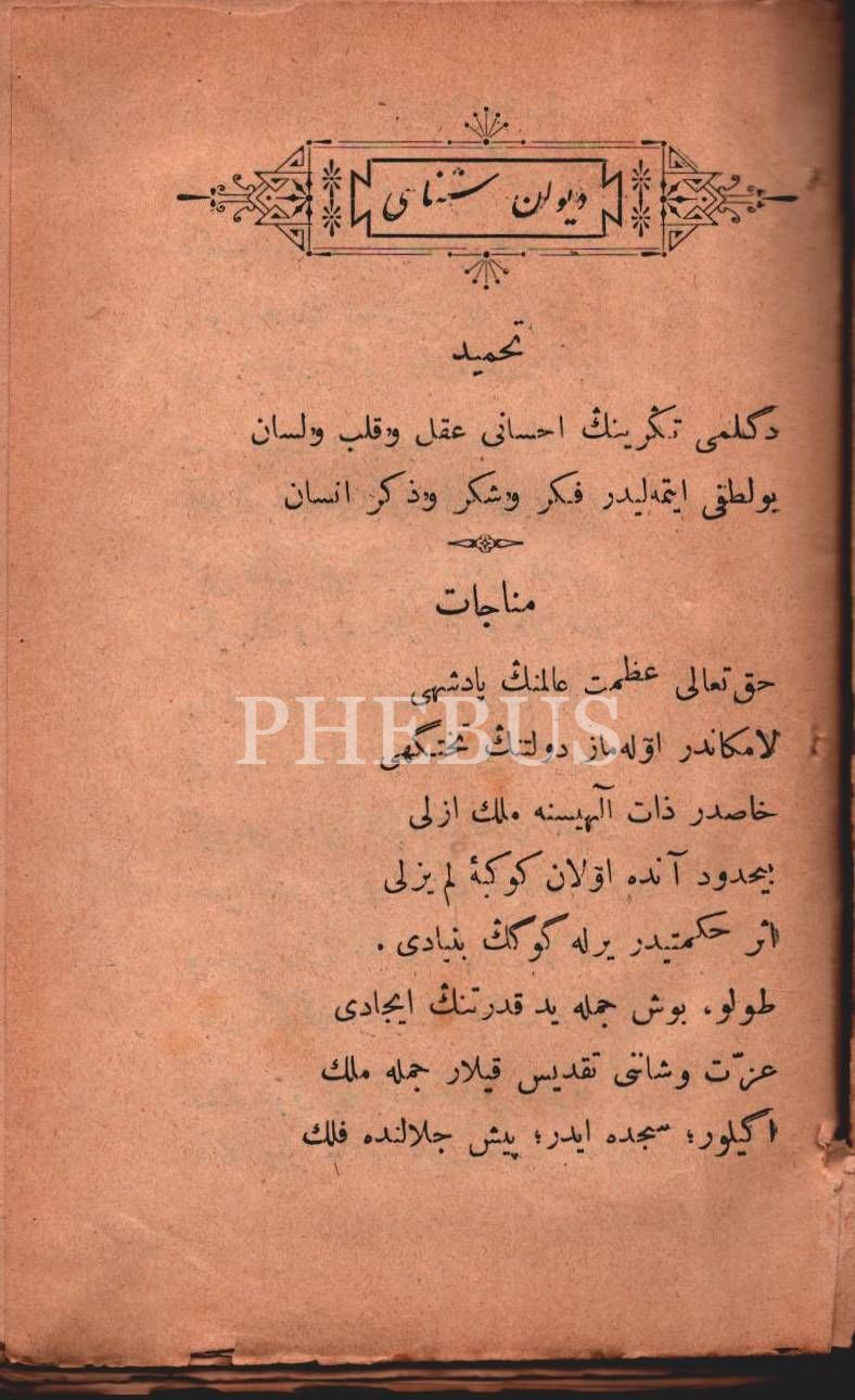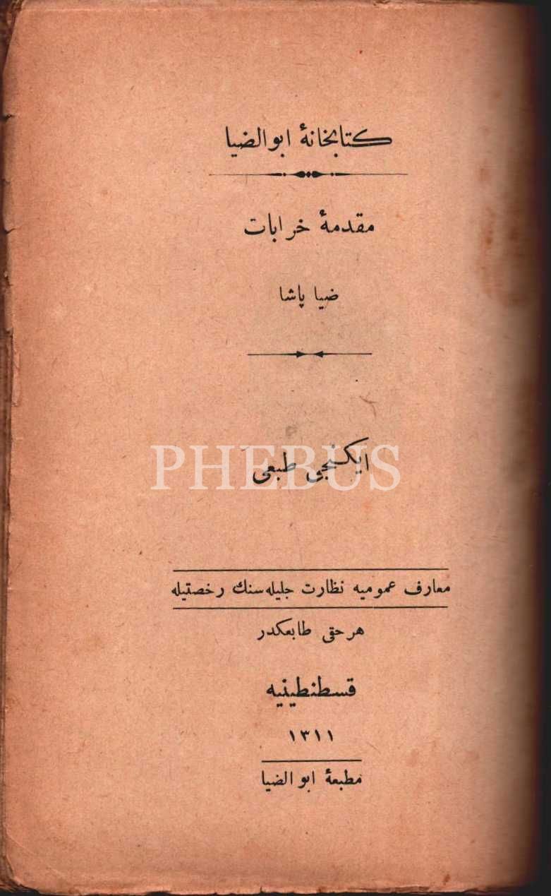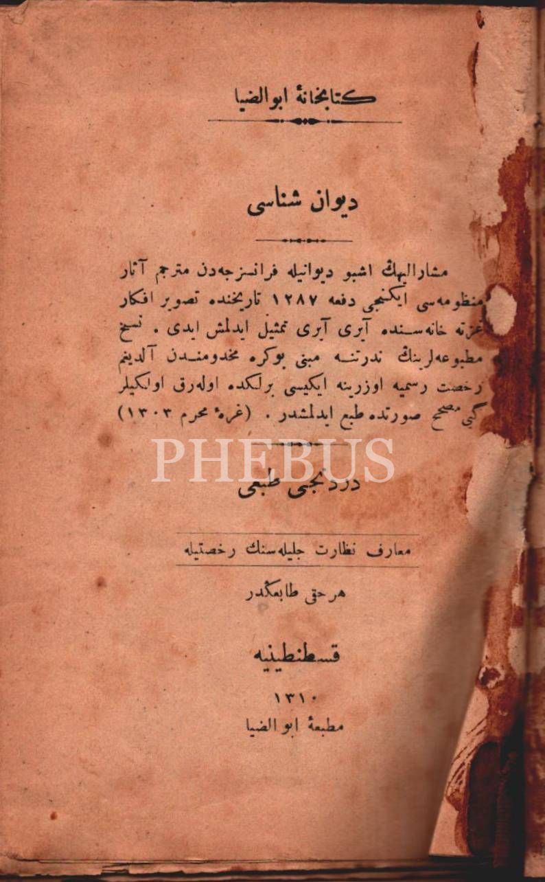 DÎVÂN-I ŞİNÂSÎ, Matbaa-i Ebuzziya, İstanbul 1310, 118 s.; MUKADDİME-İ HARÂBÂT, Ziya Paşa, Matbaa-i Ebuzziya, İstanbul 1311, 109 s.;