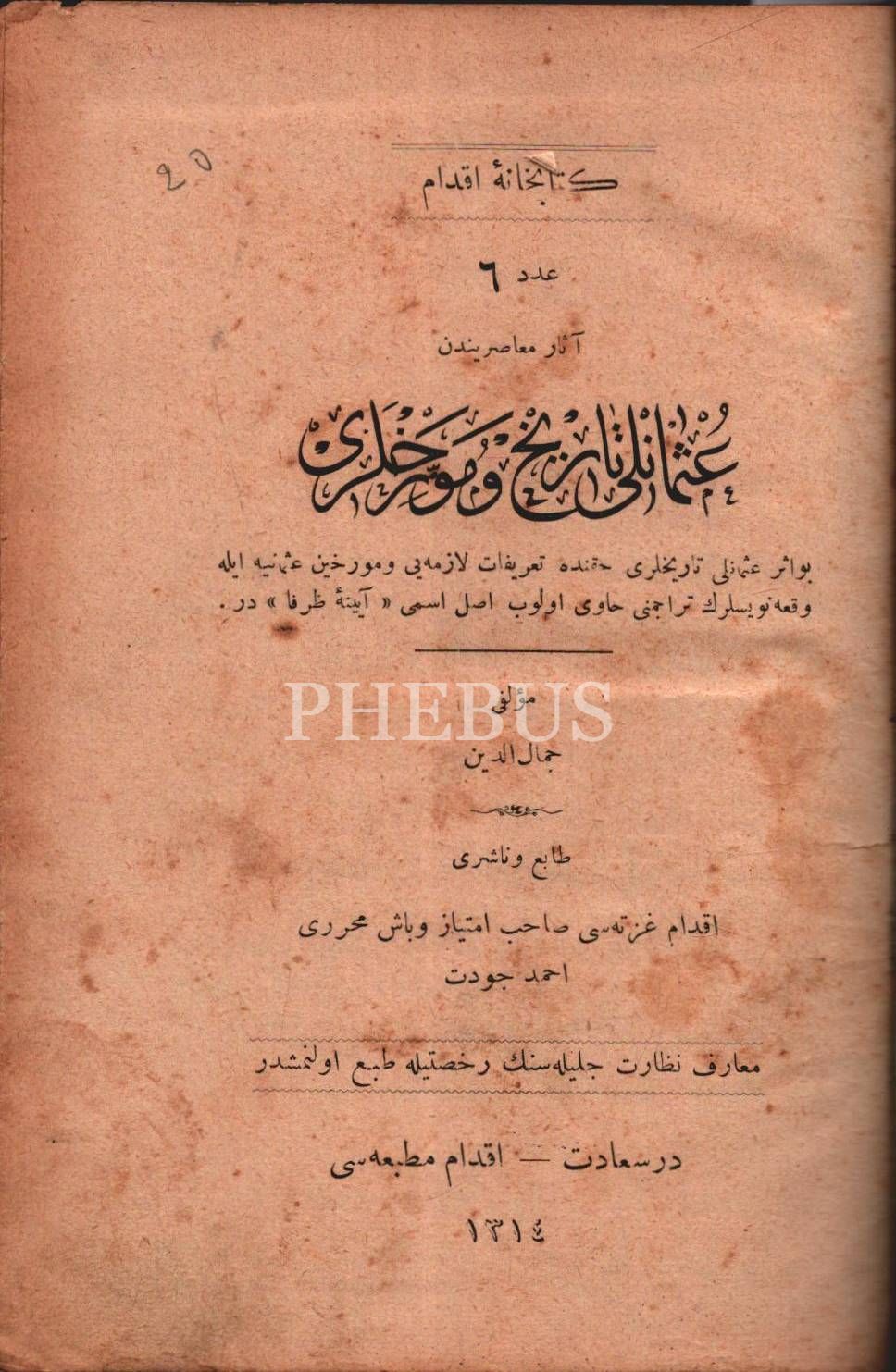 OSMANLI TÂRÎH VE MÜVERRİHLERİ/ÂYİNE-İ ZUREFÂ, Cemaleddin, İkdam Matbaası, İstanbul 1314, 156 s., 14x19 cm