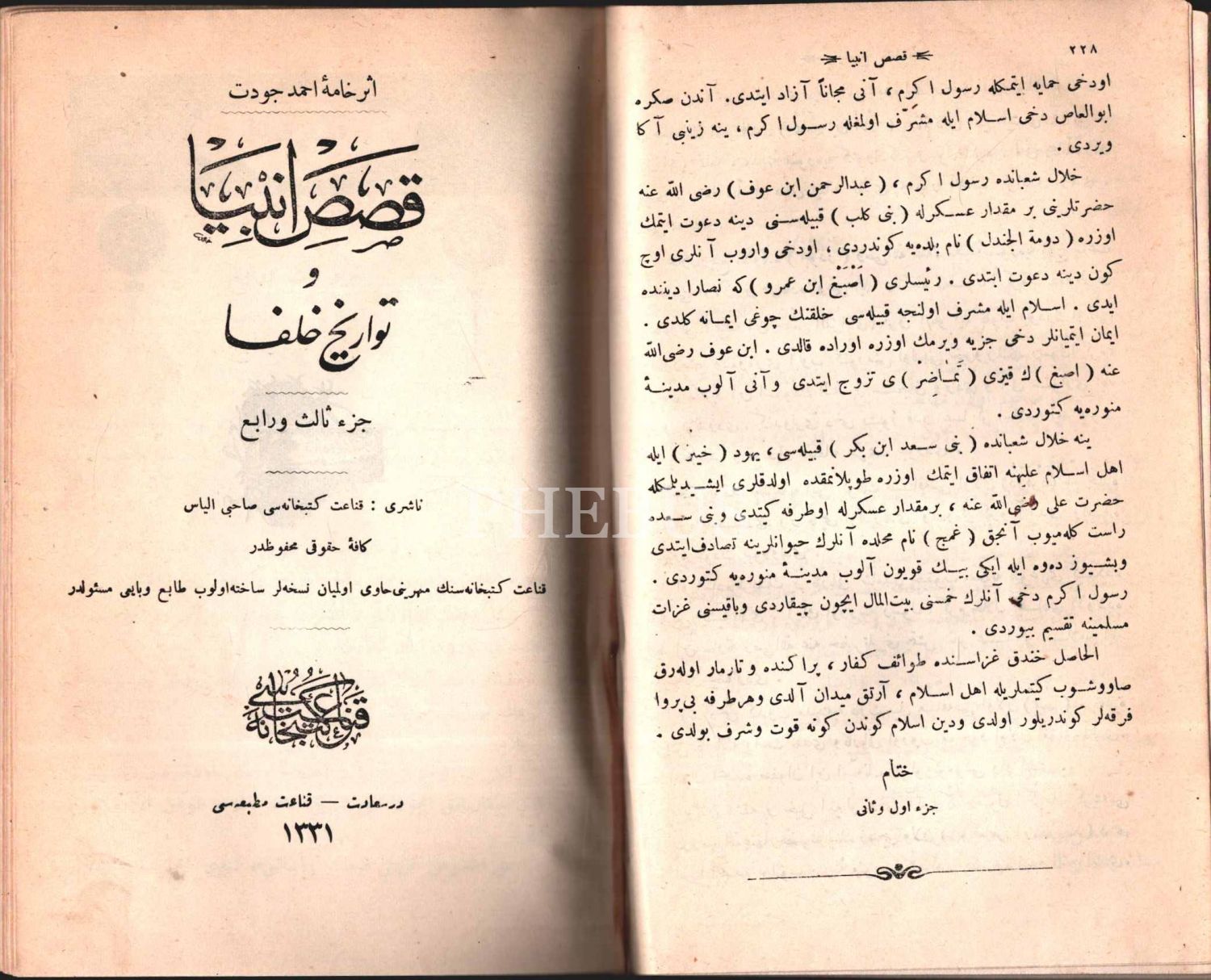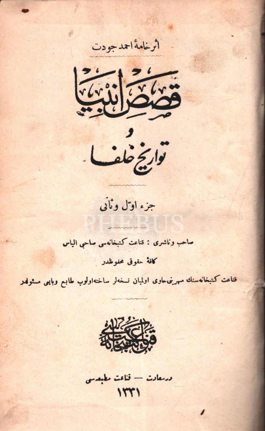 KISAS-I ENBİYÂ VE TEVÂRÎH-İ HULEFÂ (8 cilt bir arada), Ahmed Cevdet, Kanaat Matbaası, İstanbul 1331, 696+320 s., 15x22 cm