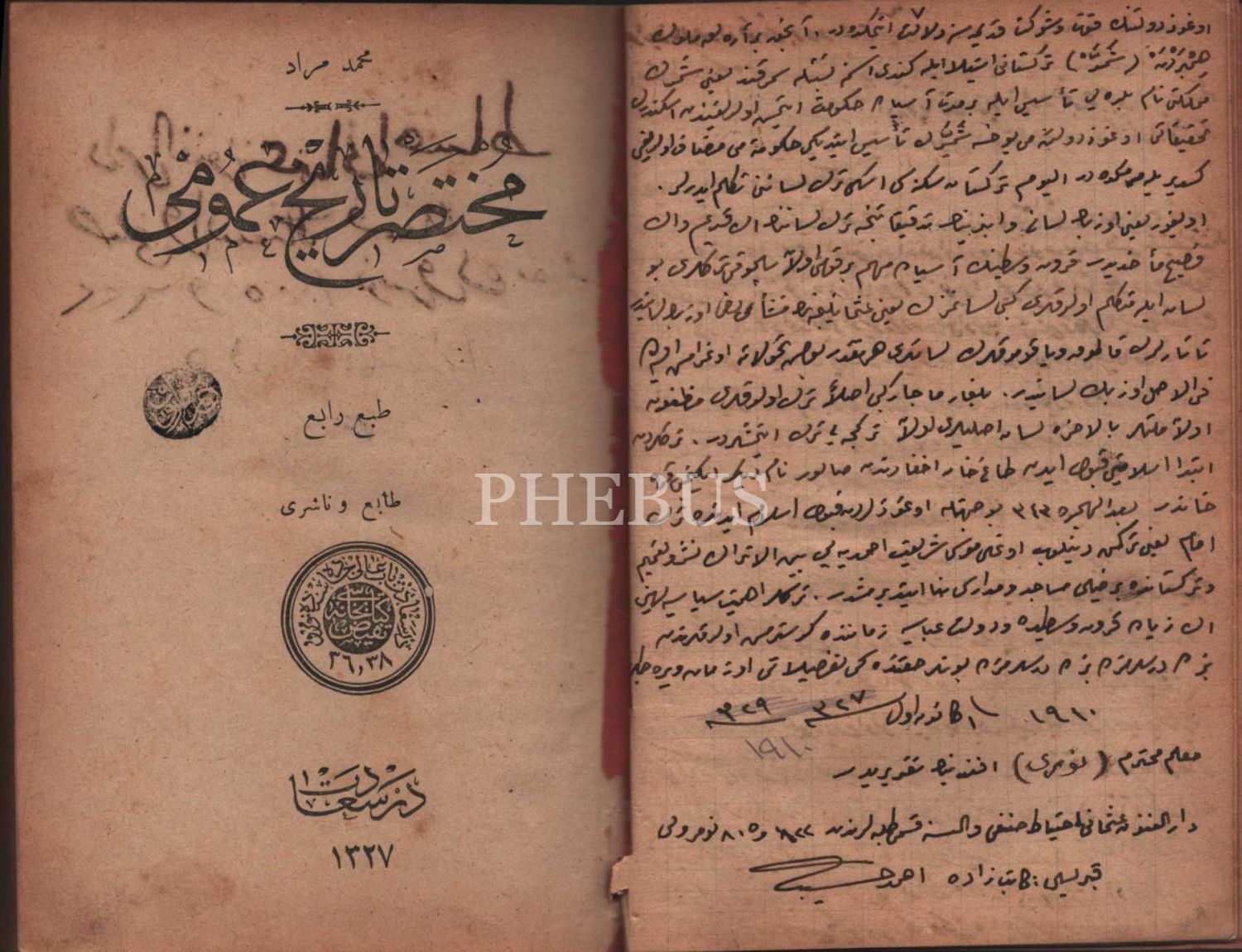 MUHTASAR TÂRÎH-İ UMÛMÎ, Mehmed Murad, Tefeyyüz Kitabhanesi, İstanbul 1327, 233 s., 12x18 cm