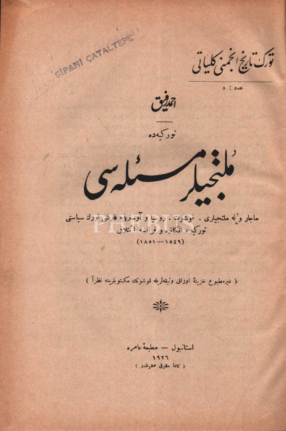 TÜRKİYE´DE MÜLTECÎLER MESELESİ, Ahmed Refik, Matbaa-i Amire, İstanbul 1926, 259 s., 17x24 cm