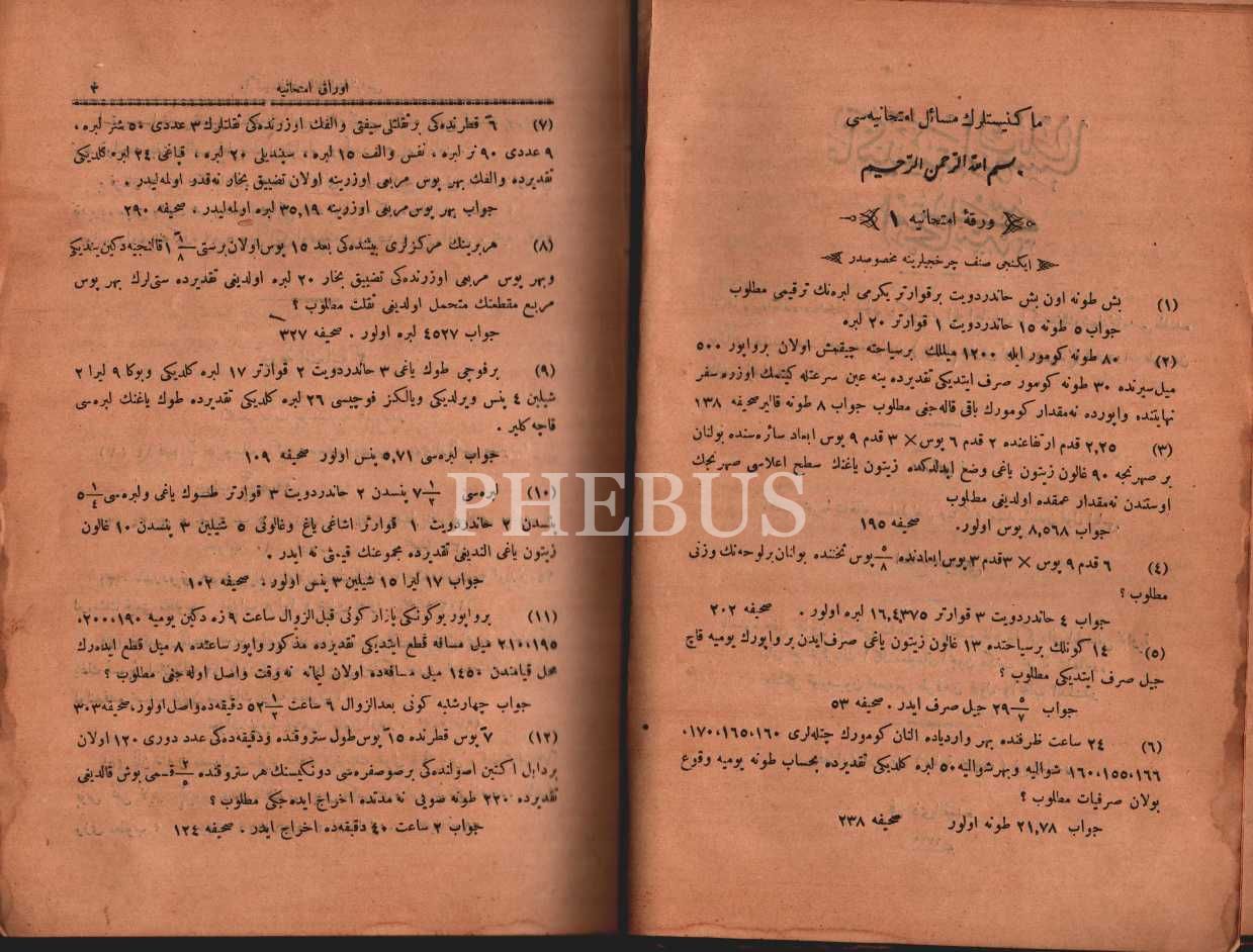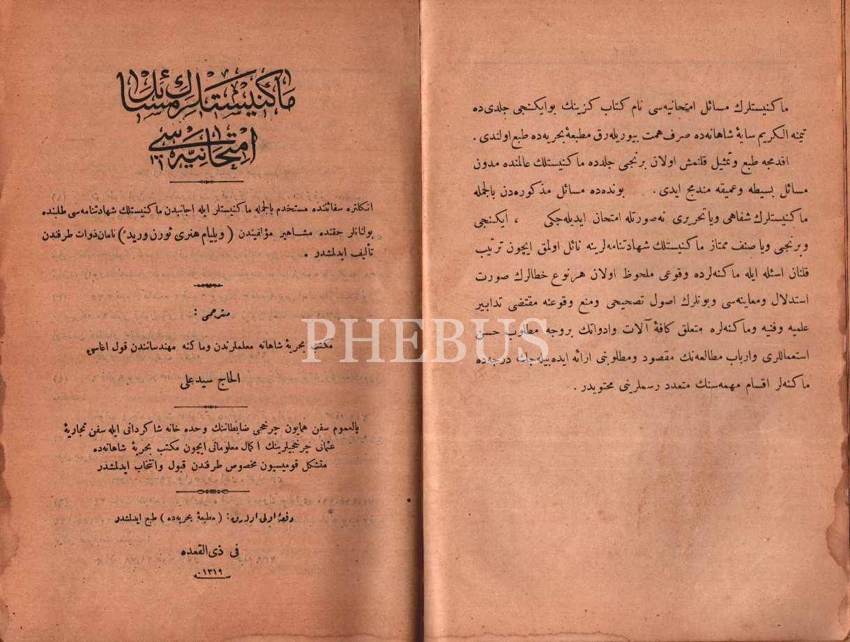 Çapa ve makine işleme tasvirli özel cildinde MAKİNİSTLERİN MESÂİL-İ İMTİHÂNİYYESİ, William Henry Thorn Werid, çev. el-Hac Seyyid Ali, Matbaa-i Bahriye, 1319, 463 s., 17x24 cm