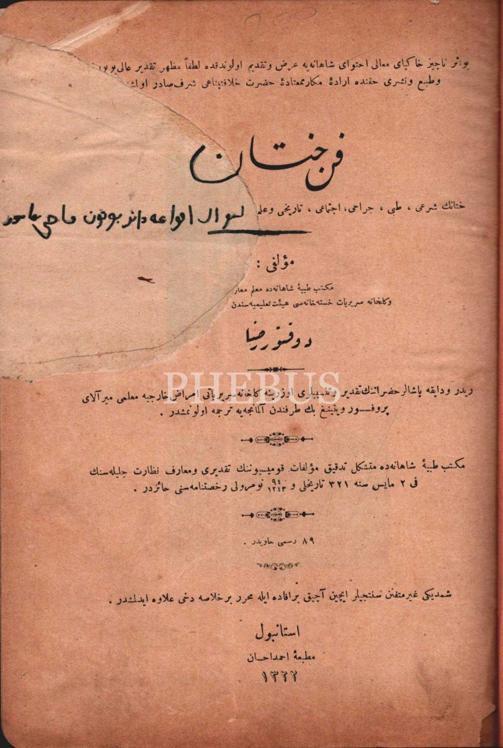 FENN-İ HITÂN [Sünnet], Doktor Rıza, Matbaa-i Ahmed İhsan, İstanbul 1322, 248 s., 17x24 cm