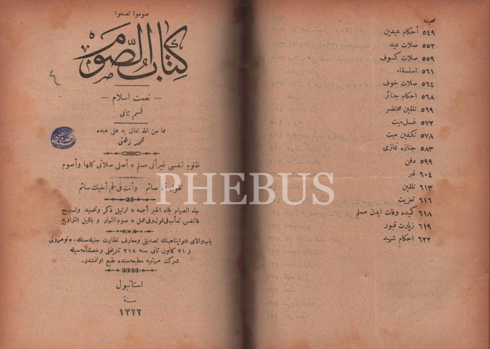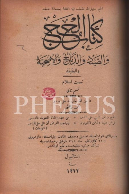 KİTÂBU´S-SALÂT, Şirket-i Mürettibiye Matbaası, İstanbul 1322, 628 s.; KİTÂBU´S-SAVM, Şirket-i Mürettibiye Matbaası, İstanbul 1322, 119 s.; KİTÂBÜ´Z-ZEKÂT, Şirket-i Mürettibiye Matbaası, İstanbul 1322, 46 s.; KİTÂBÜ´L-HACC VE´S-SAYD VE´Z-ZEBÂİH VE´L-UDHİYE VE´L-AKÎKA, 134 s.; 15x20 cm