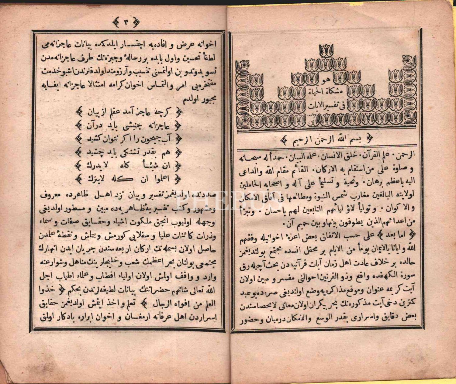 MİŞKÂTÜ´L-HAYÂT FÎ TEFSÎRİ´L-ÂYÂT, İstanbul 1289, 102 s., 13x19 cm