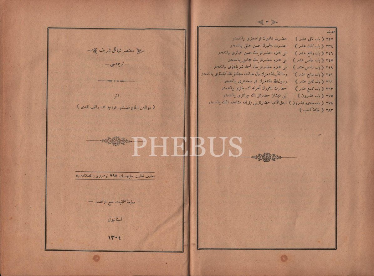 MUHTASAR ŞEMÂİL-İ ŞERÎF TERCÜMESİ, Hace Mehmed Râif Efendi, Matbaa-i Osmaniye, İstanbul 1304, 283 s., 20x27 cm