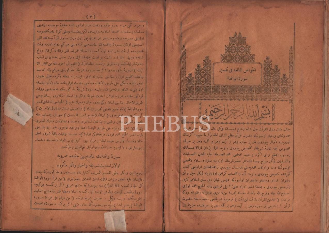 EL-HAVASSU´N-NÂFİA FÎ TEFSÎR-İ SÛRETİ´L-VÂKIA, el-Hac Mehmed Fevzi Efendi, 1313, 19 s., 17x25 cm