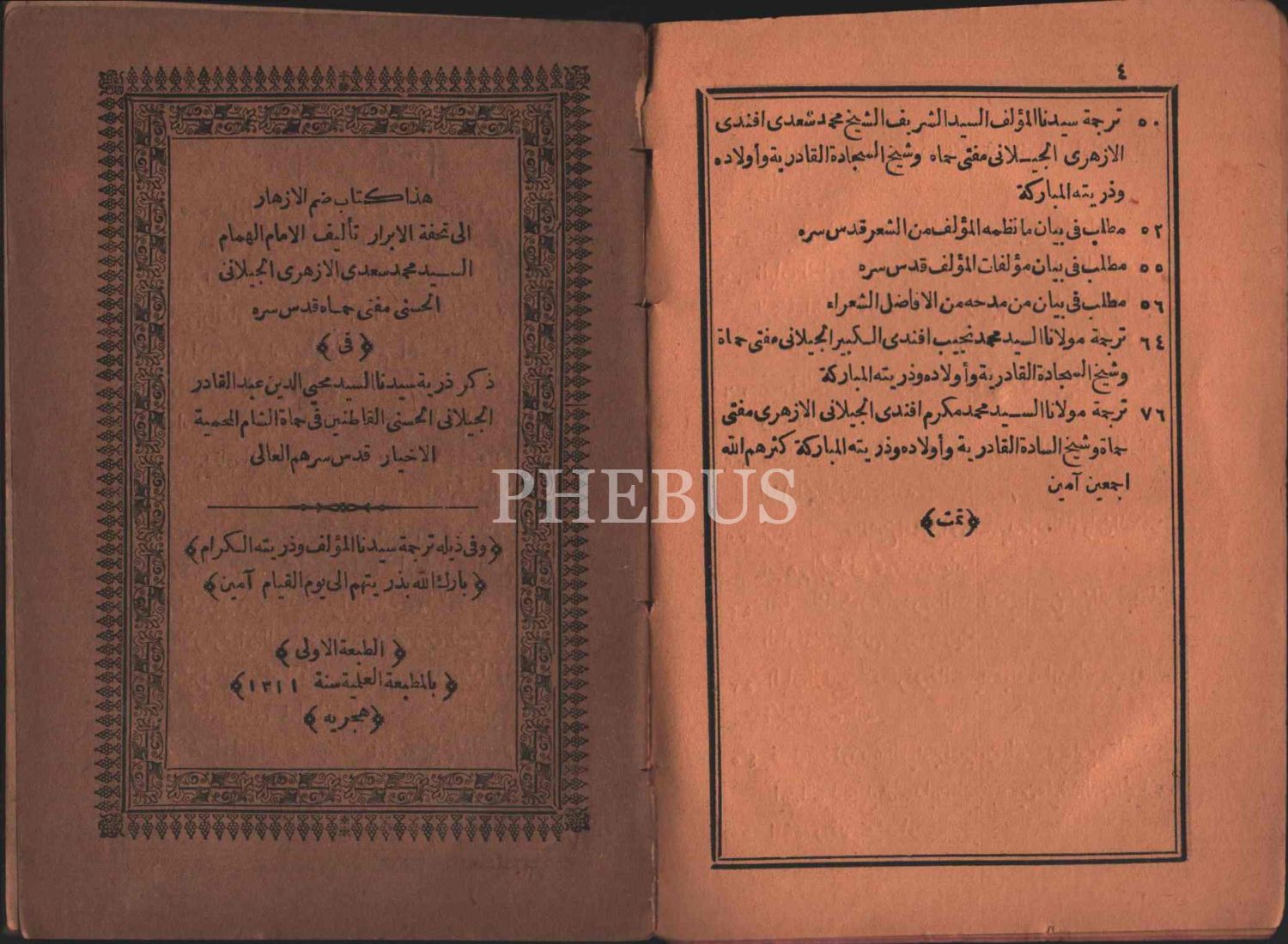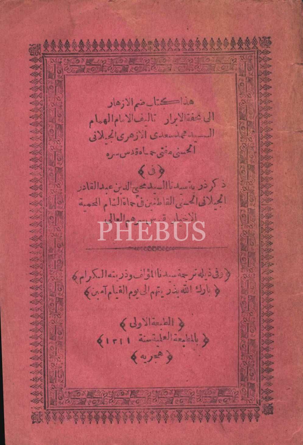 Arapça KİTÂBÜ ZAMMİ´L-EZHÂR İLÂ TUHFETİ´L-EBRÂR, Seyyid Muhammed Sadi el-Ezheri el-Cîlâni, Matbaa-i İlmiyye, 1311, 79 s., 13x19 cm