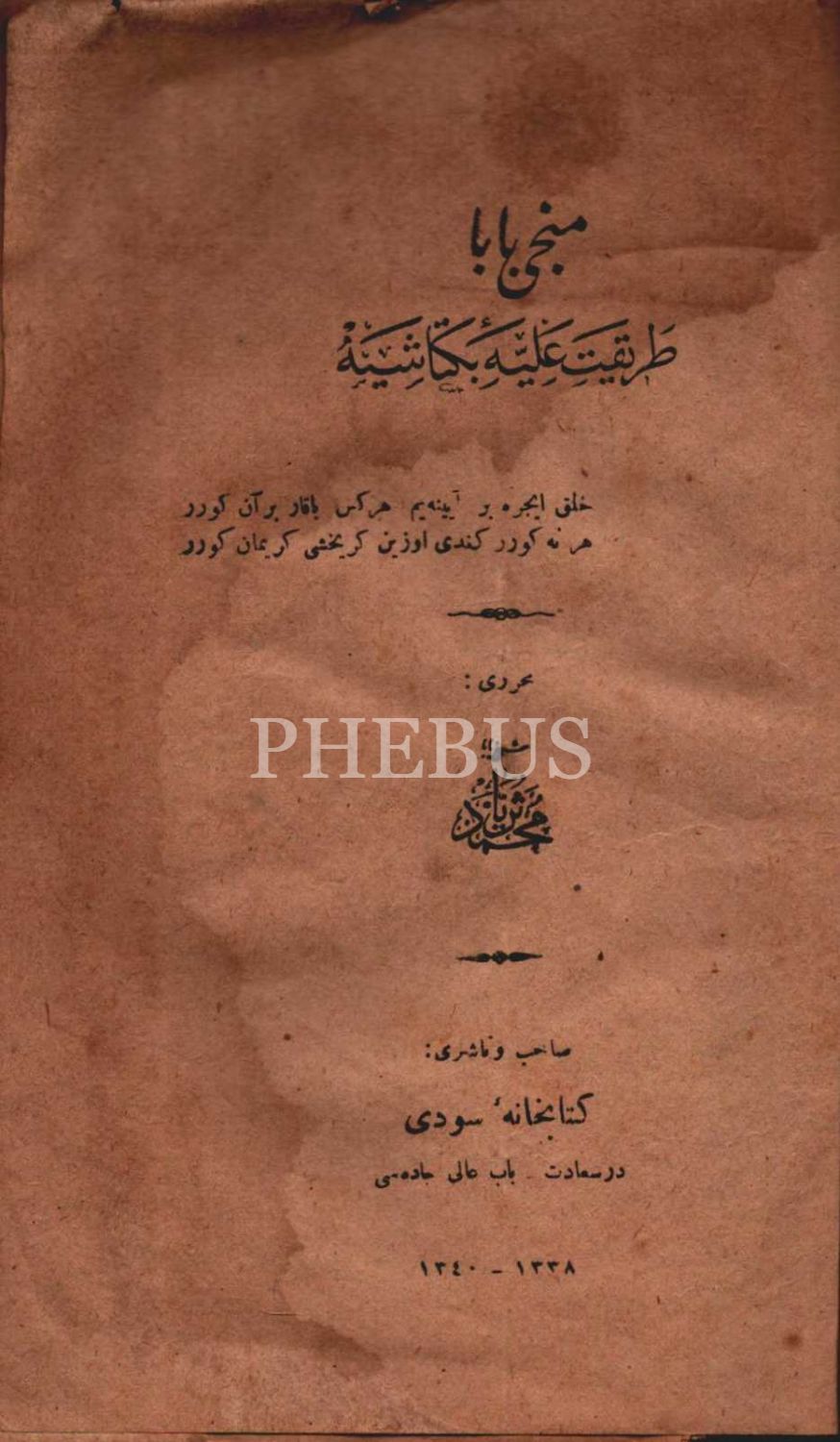 MÜNCÎ BABA (Tarîkat-ı Aliyye-i Bektâşiyye), Şeyh Mehmed Süreyya, Kitabhane-i Sûdi, İstanbul 1340, 46 s., 14x21 cm