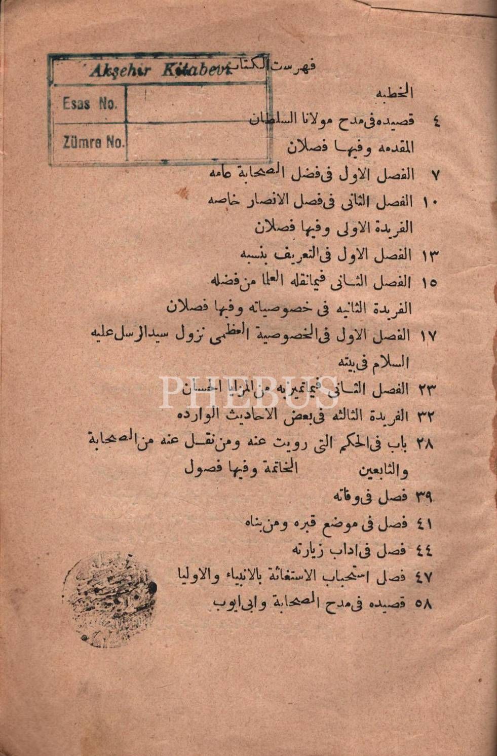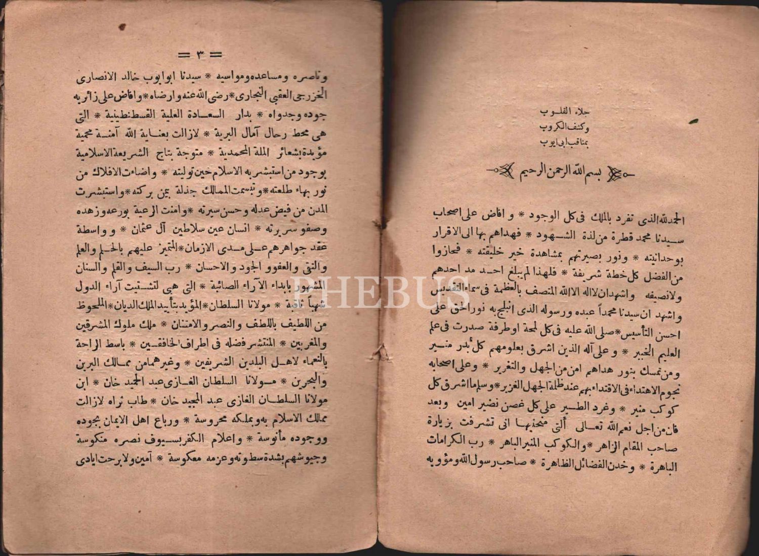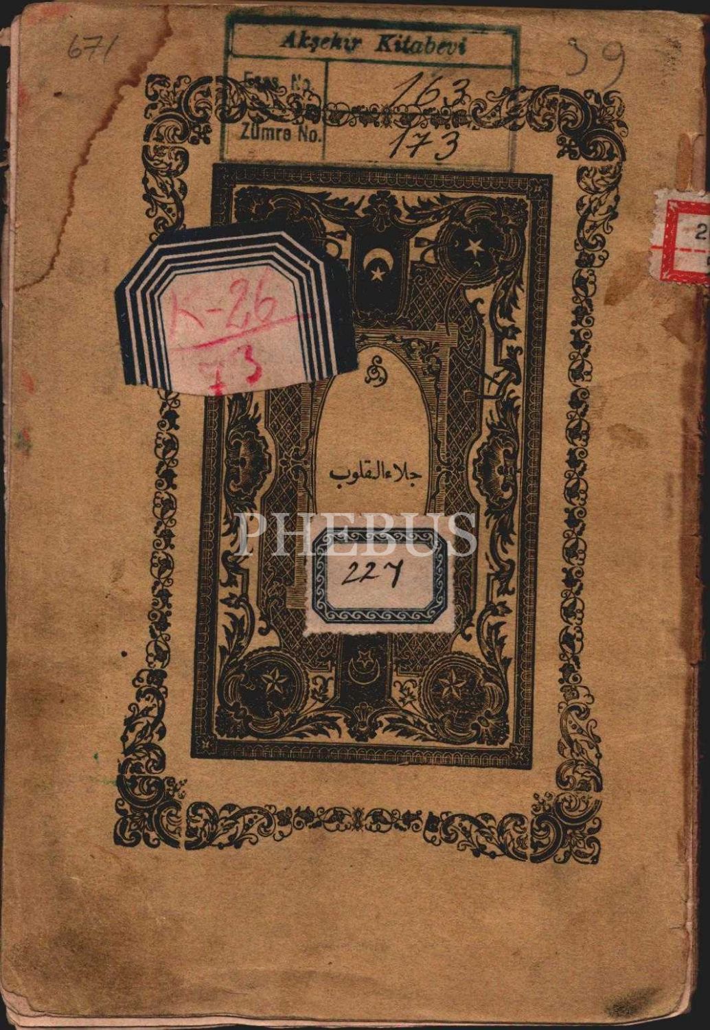 Arapça CİLÂÜ´L-KULÛB VE KEŞFÜ´L-KÜRÛB Bİ-MENÂKIB-I EBÎ EYYÛB, Abdülhafîz İbn Osman el-Kâri et-Tâifi, Mihran Matbaası, İstanbul 1298, 61 s., 13x19 cm
