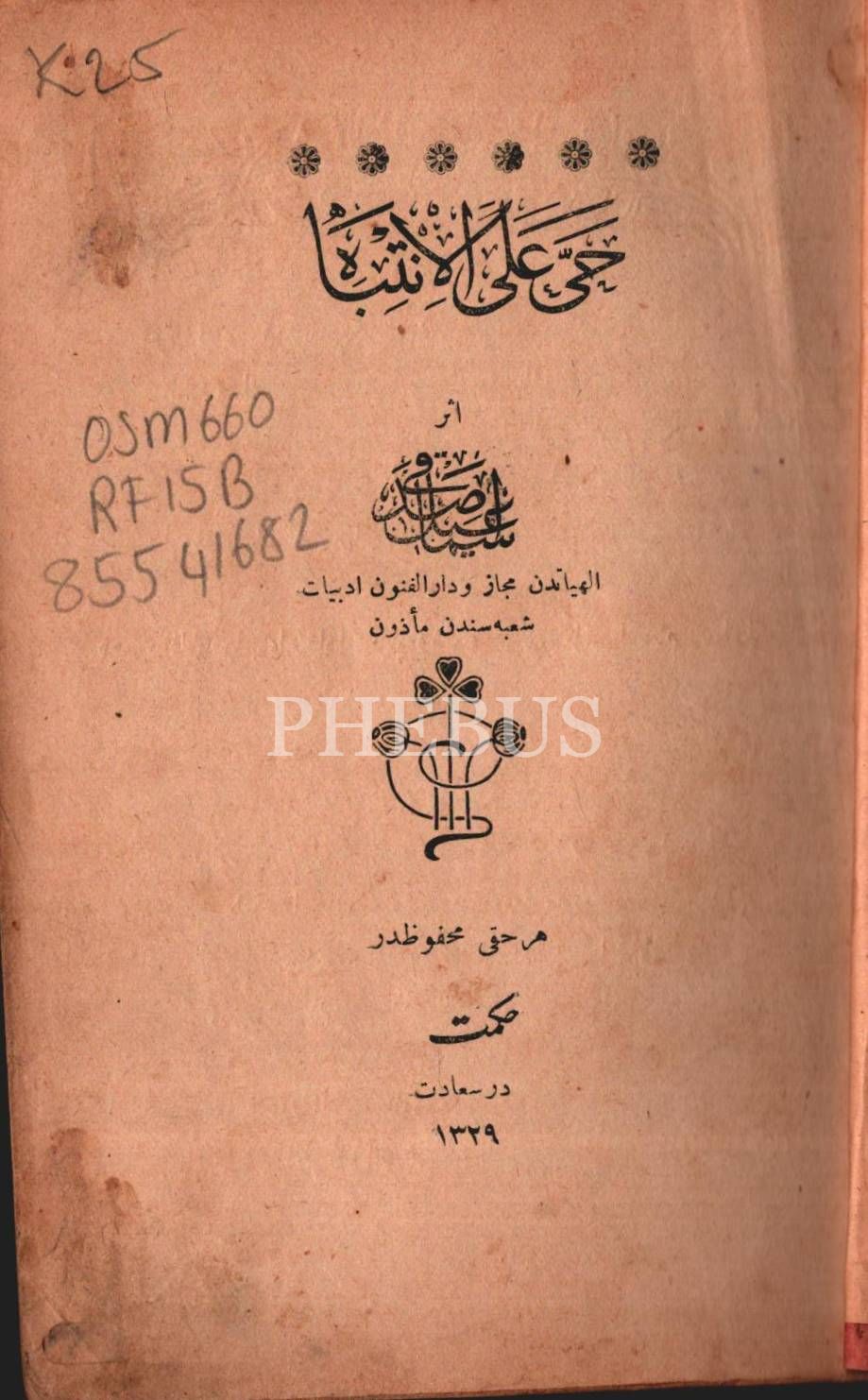 HAYYE ALE´L-İNTİBÂH, İsmail Sıdkı, İstanbul 1329, 142 s., 13x19 cm
