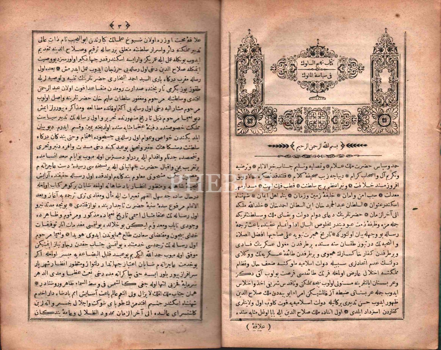 KİTÂB-I NEHCİ´S-SÜLÛK FÎ SİYÂSETİ´L-MÜLÛK, [Ebu´n-Necib Şeyzerî], Ali Rıza Efendi Matbaası, 1286, 152 s., 15x24 cm