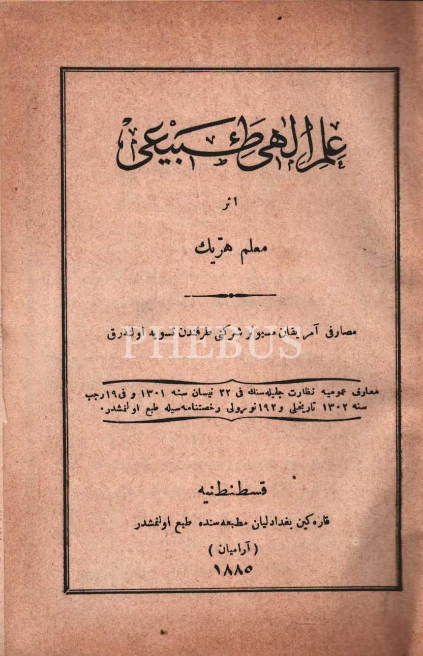 İLM-İ İLÂHÎ-İ TABÎÎ, Muallim Herrick, Karakin Bağdadliyan Matbaası, İstanbul 1885, 196 s., 12x17 cm