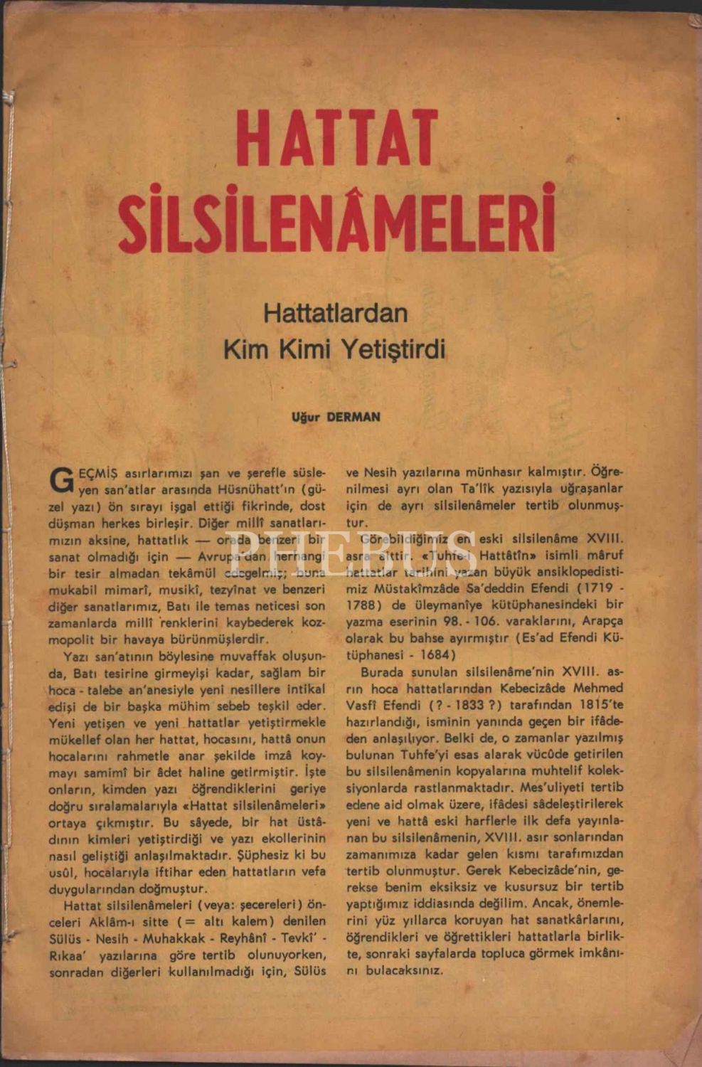 HATTAT SİLSİLENÂMELERİ (Hattatlardan Kim Kimi Yetiştirdi), Uğur Derman, 13 sayfa, 16x24 cm