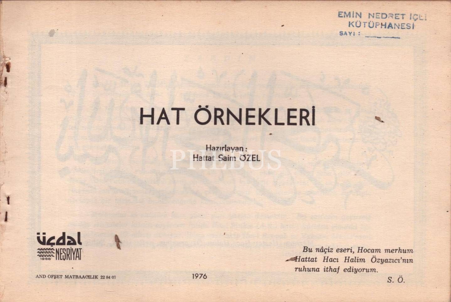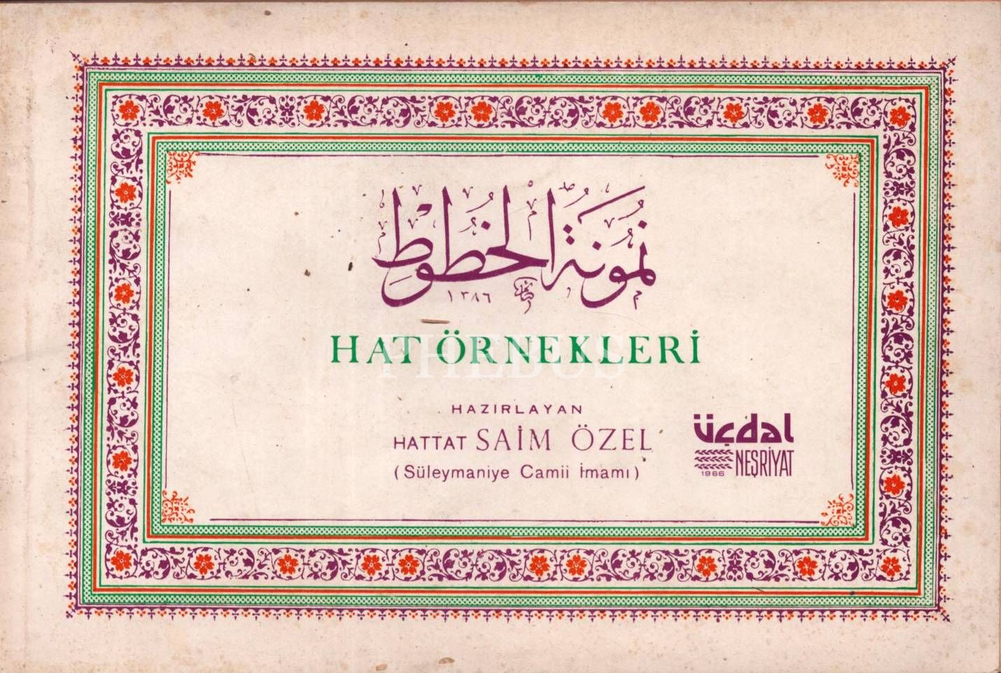 HAT ÖRNEKLERİ, hazırlayan: Hattat Saim Özel (Süleymaniye Camii İmamı), Üçdal Neşriyat, 1976, 64 sayfa, 25x17 cm
