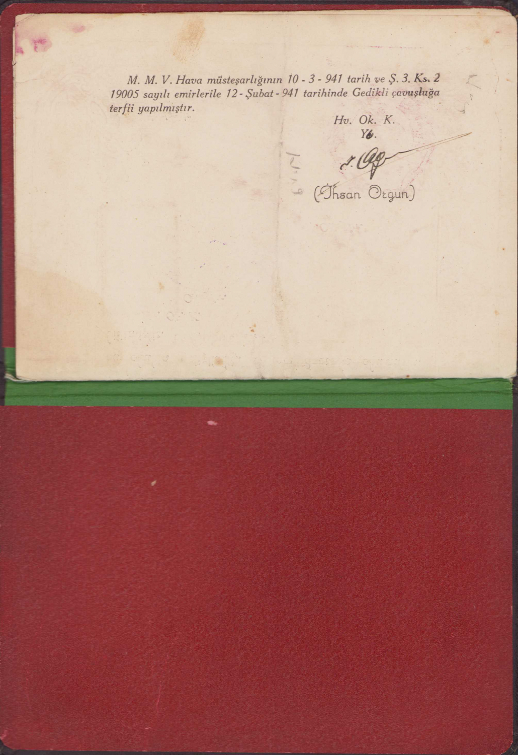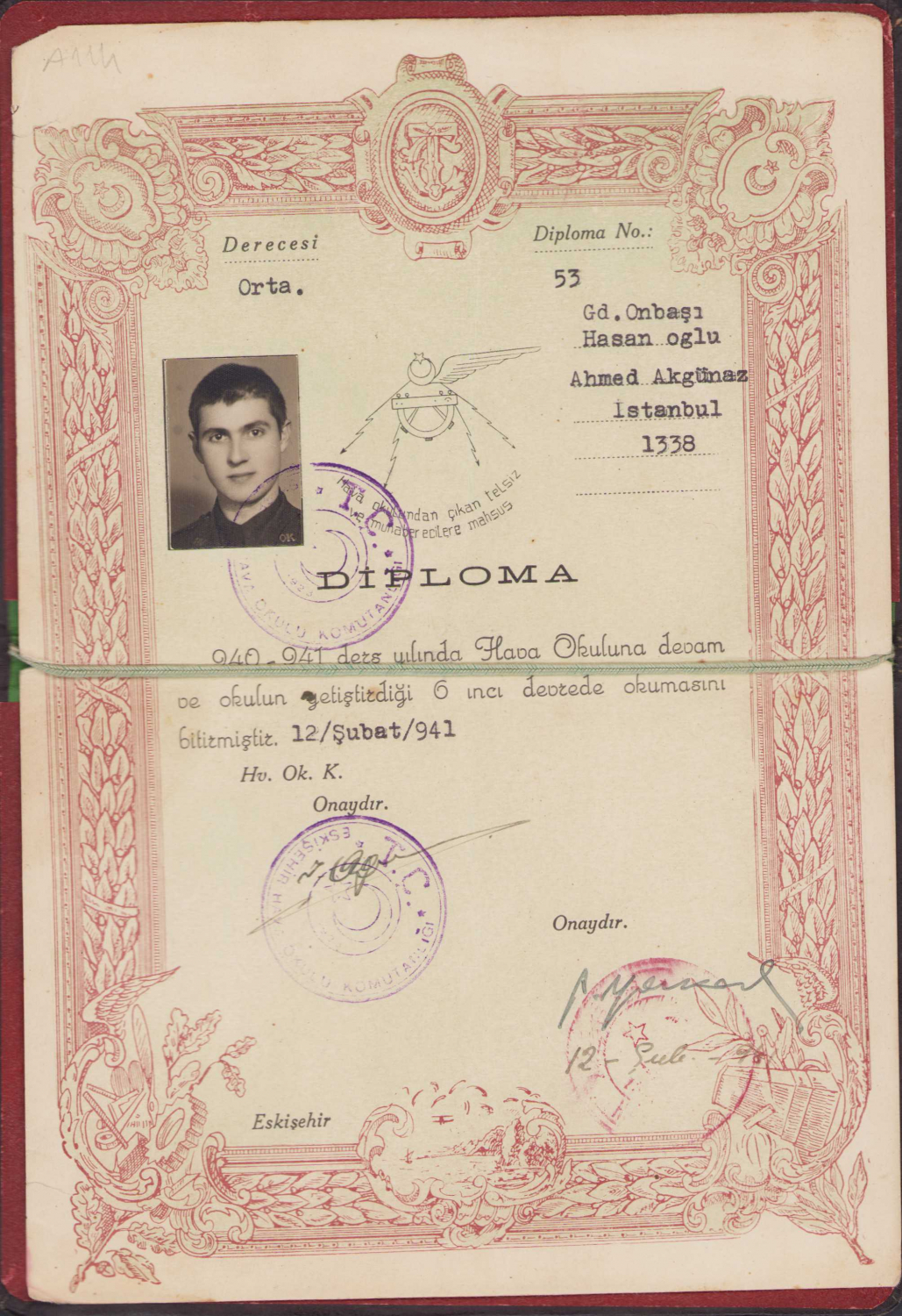 Eskişehir Hava Okul Komutanlığı'ndan mezun olan telsiz muhabereci gediklilere mahsus diploma, 1941 tarihli, orijinal deri cildinde