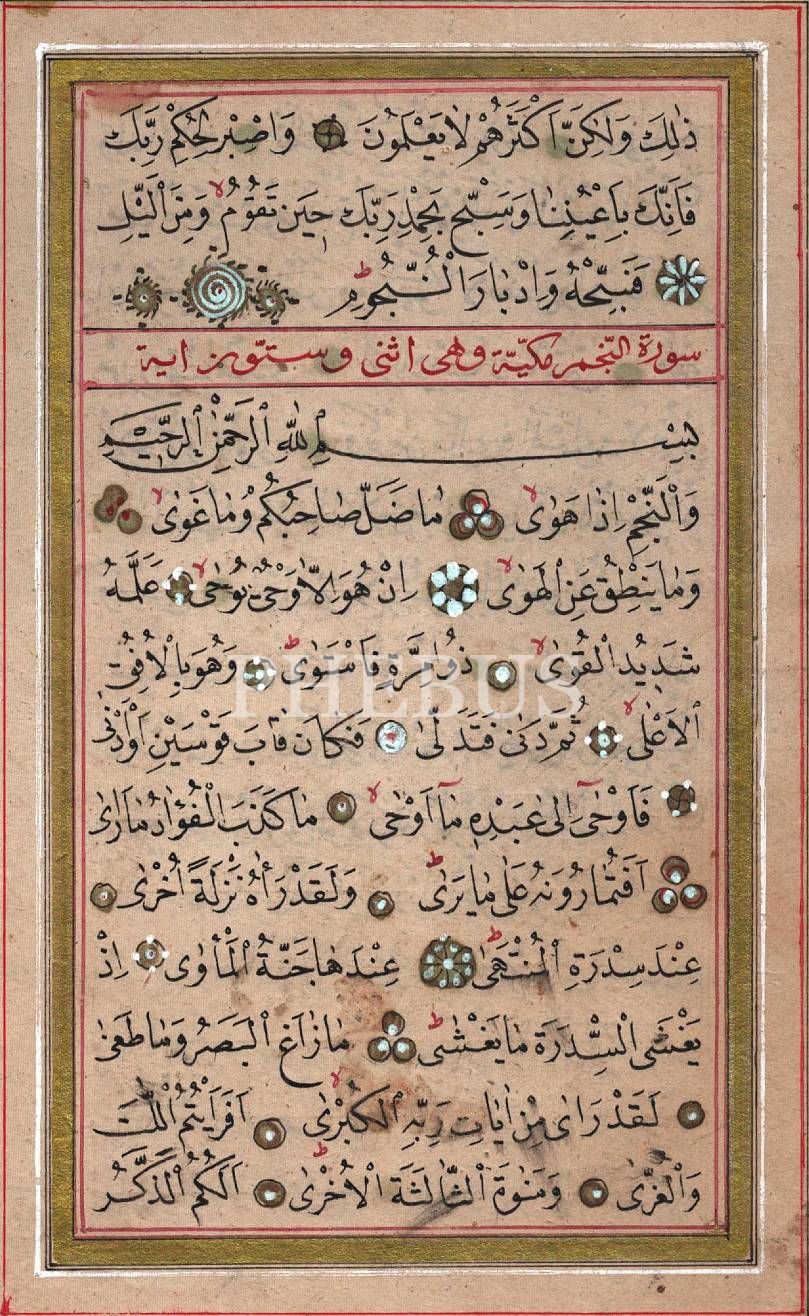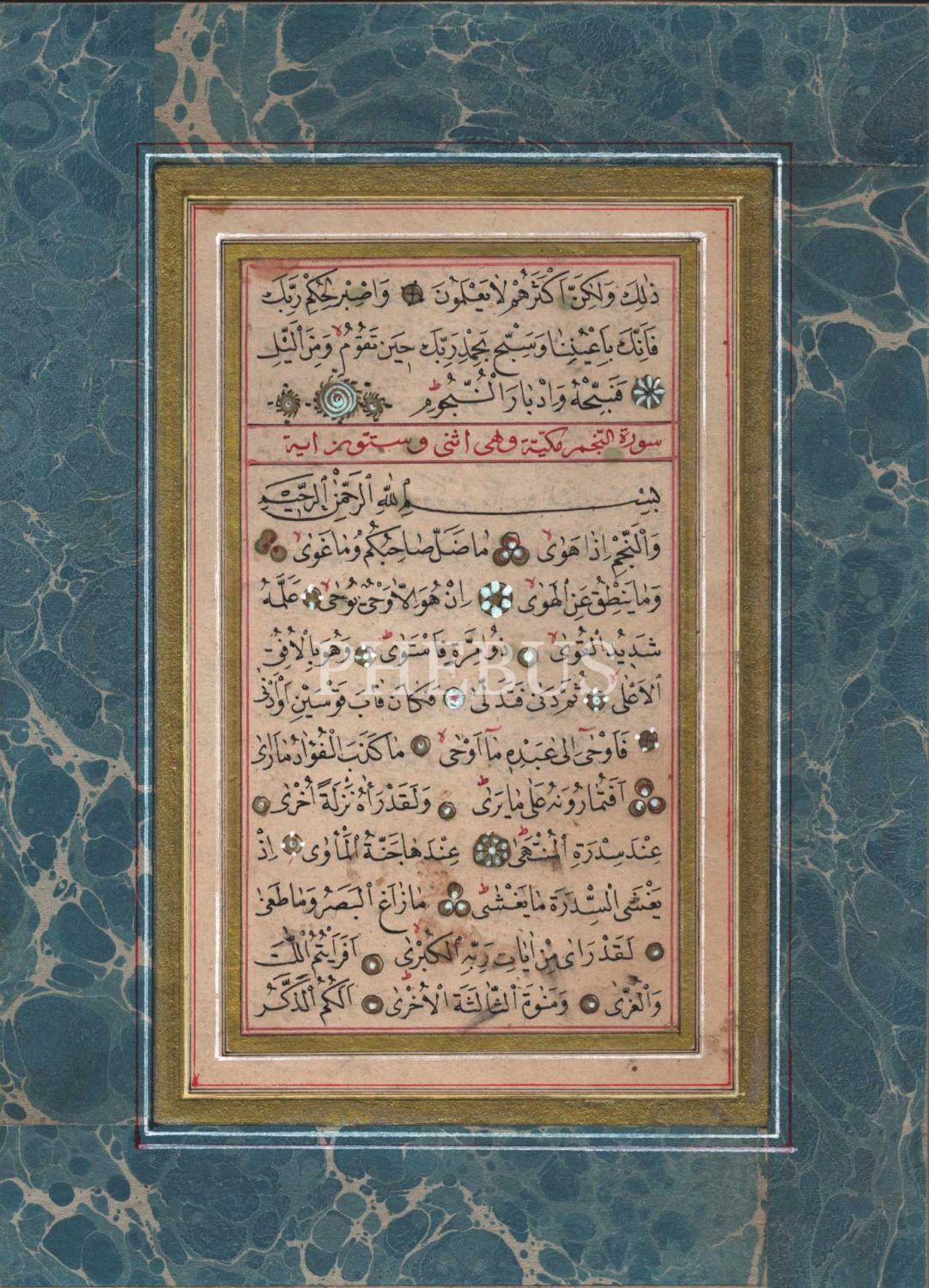 Nesih yazı ile Necm Suresinden ayetler, 18x25