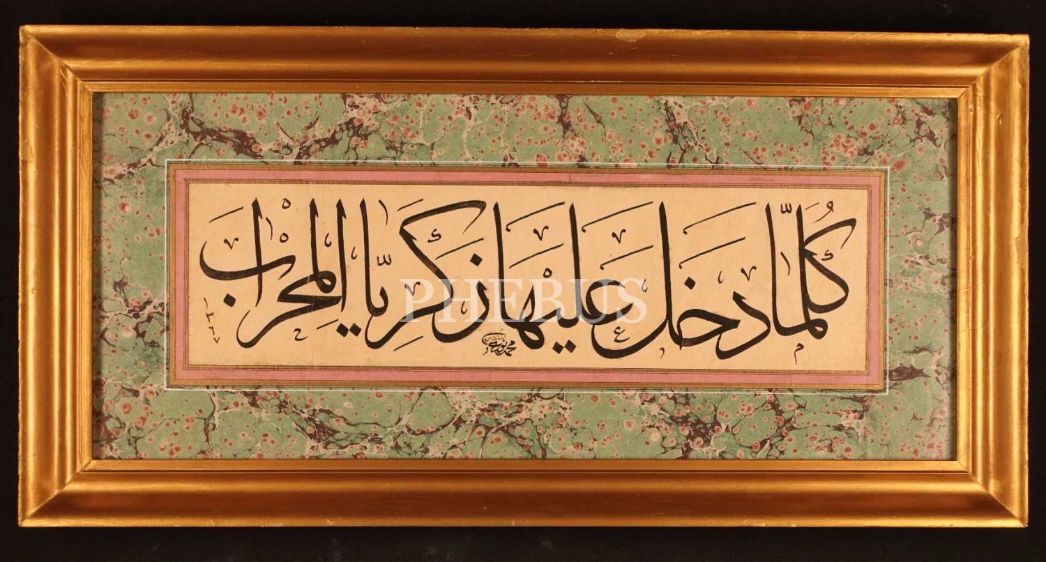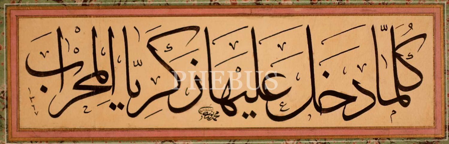 anlamı: "zekeriyyâ mihrâba her girdiğinde.." Al-i İmran 37