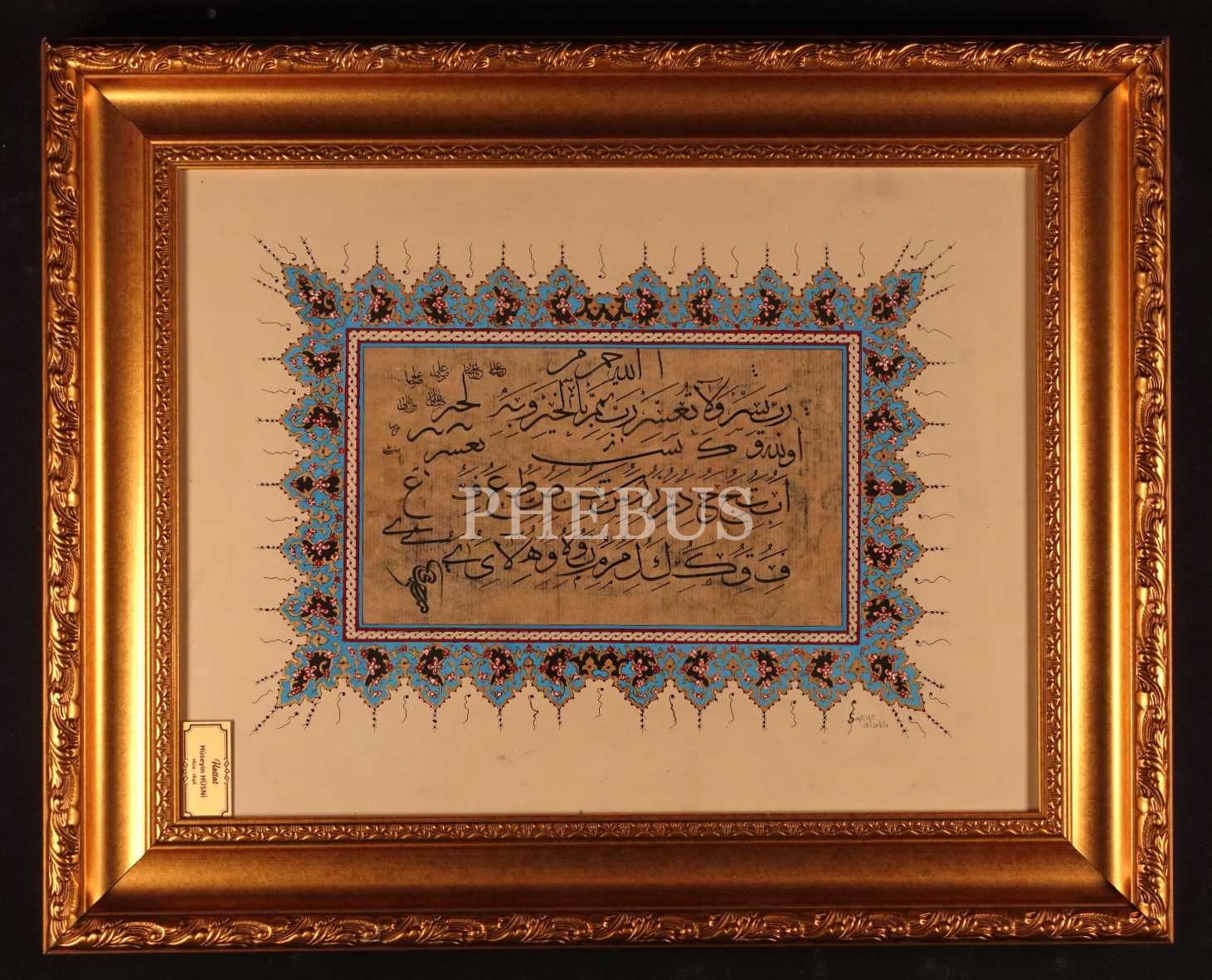 Hüseyin Hüsnî Efendi Sülüs Rabbiyessir ve hurufat meşki, 47x57