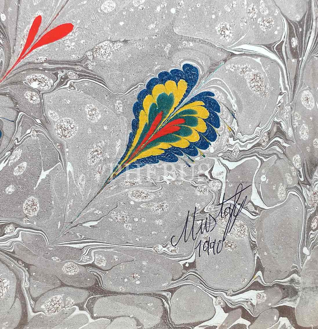 Mustafa Düzgünman imzalı, 1990 tarihli ebru, 49x34 cm