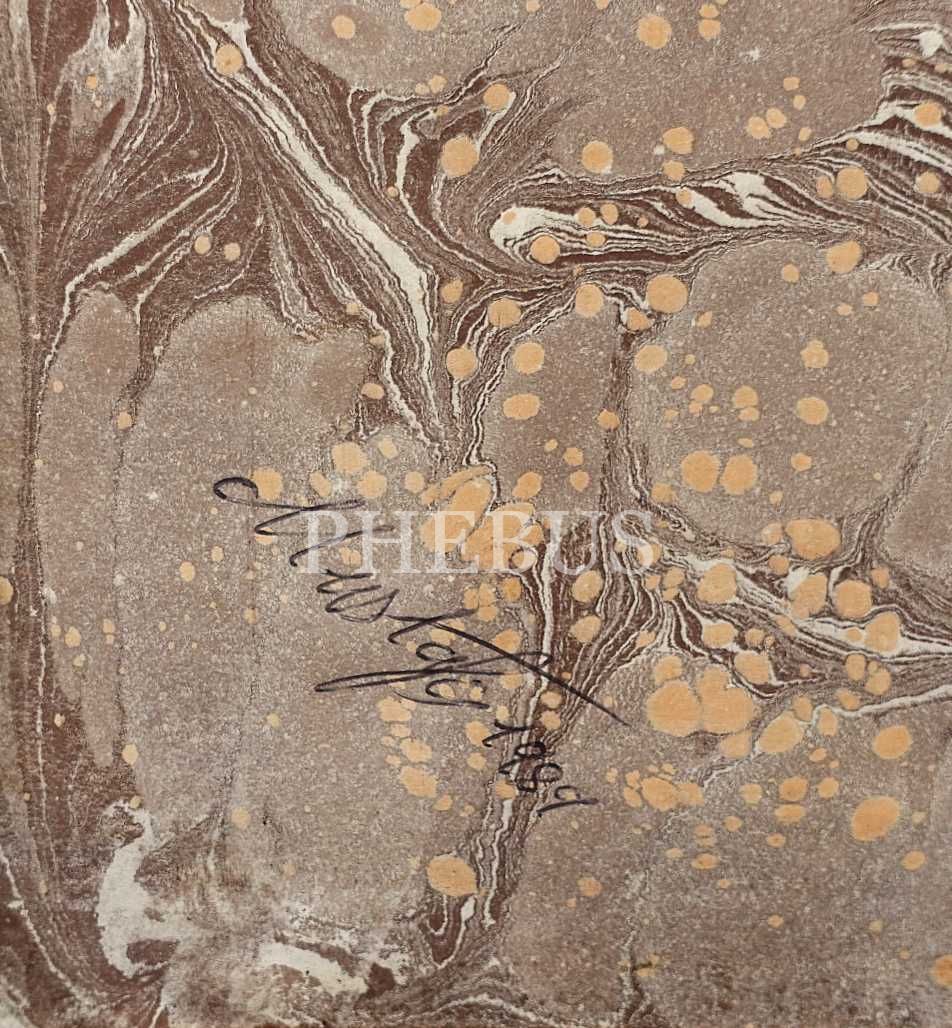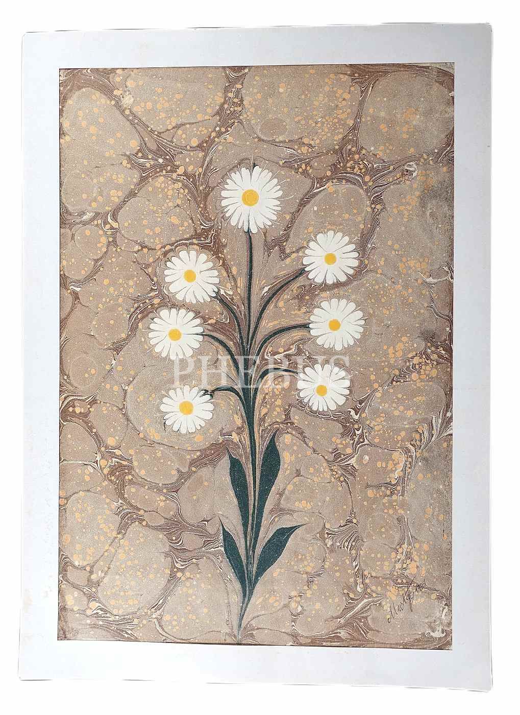 Mustafa Düzgünman imzalı, 1989 tarihli çiçekli ebru, paspartusuyla birlikte 40x55 cm