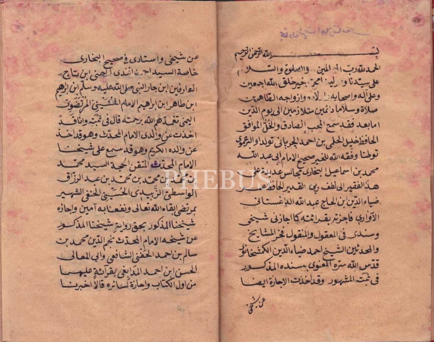 Ahmed Ziyaeddin Gümüşhanevî müridi Hafız Ömer Ziyaüddin´den Hafız Halil Hilmi b. Ahmed Çırpanî´ye verilmiş 1313 tarihli Arapça buhari şerif icâzetnâmesi, 4 varak, 14x20 cm