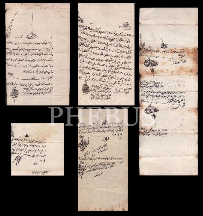 Ticaret, nikah ve vasiyet konularında kaleme alınmış 5 adet fetva, muhtelif boyutlarda