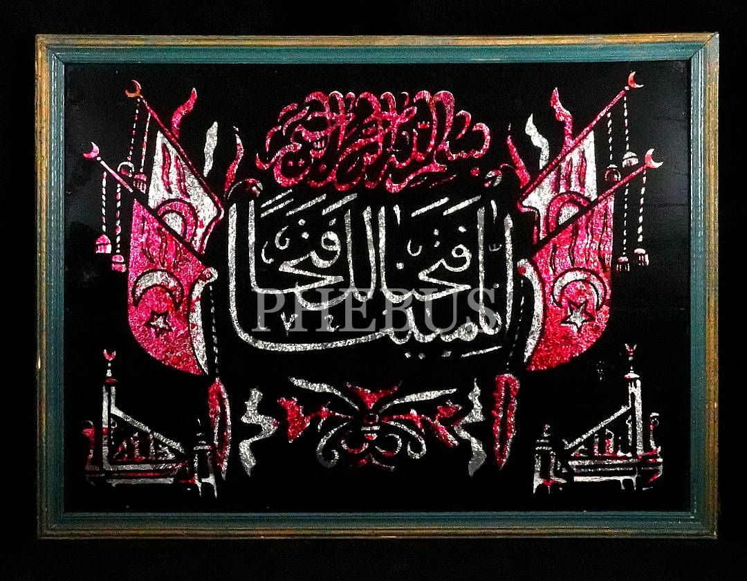 Besmele ve Fetih ayeti yazılı camaltı levha, 59x43 cm