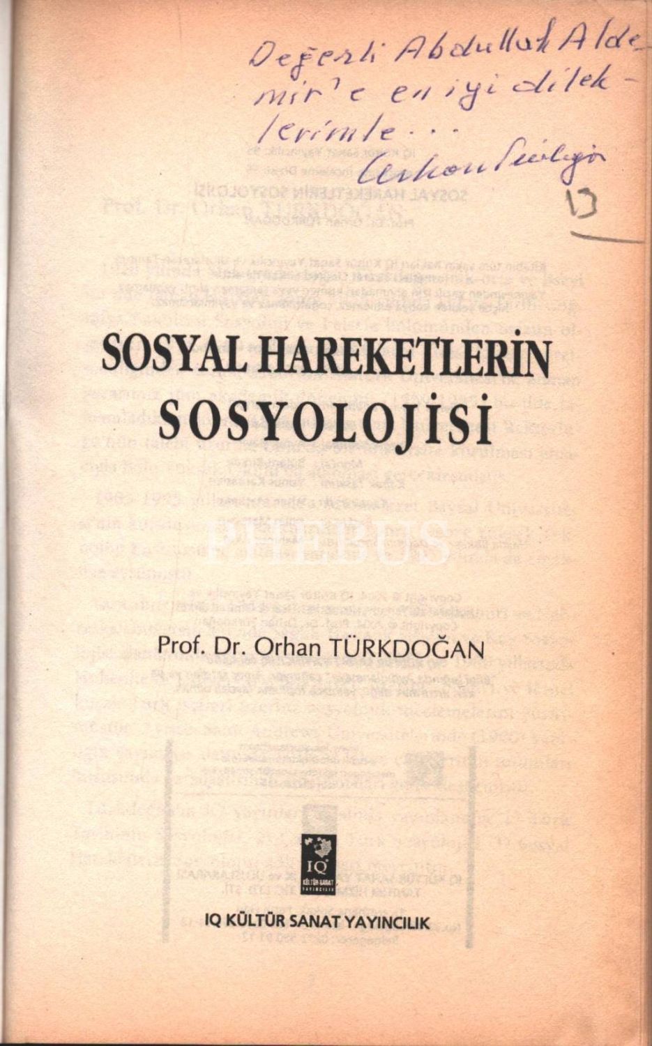 İthaf, "Değerli Abdullah Aldemir´e en iyi dileklerimle... Orhan Türkdoğan" şeklindedir.