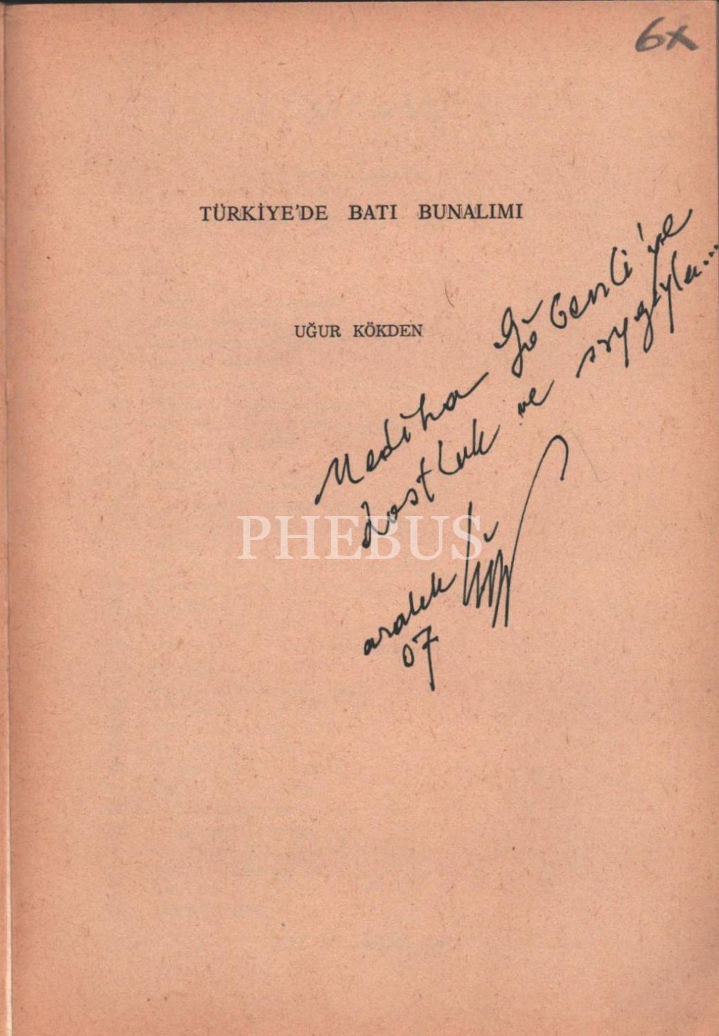 Uğur Kökden´den ithaflı ve imzalı TÜRKİYE´DE BATI BUNALIMI, Şafak Matbaası, Ankara - 1978, 243 sayfa, 14x20 cm