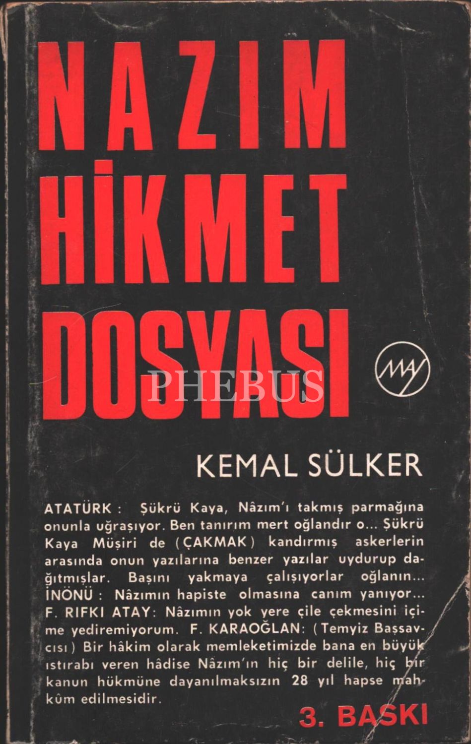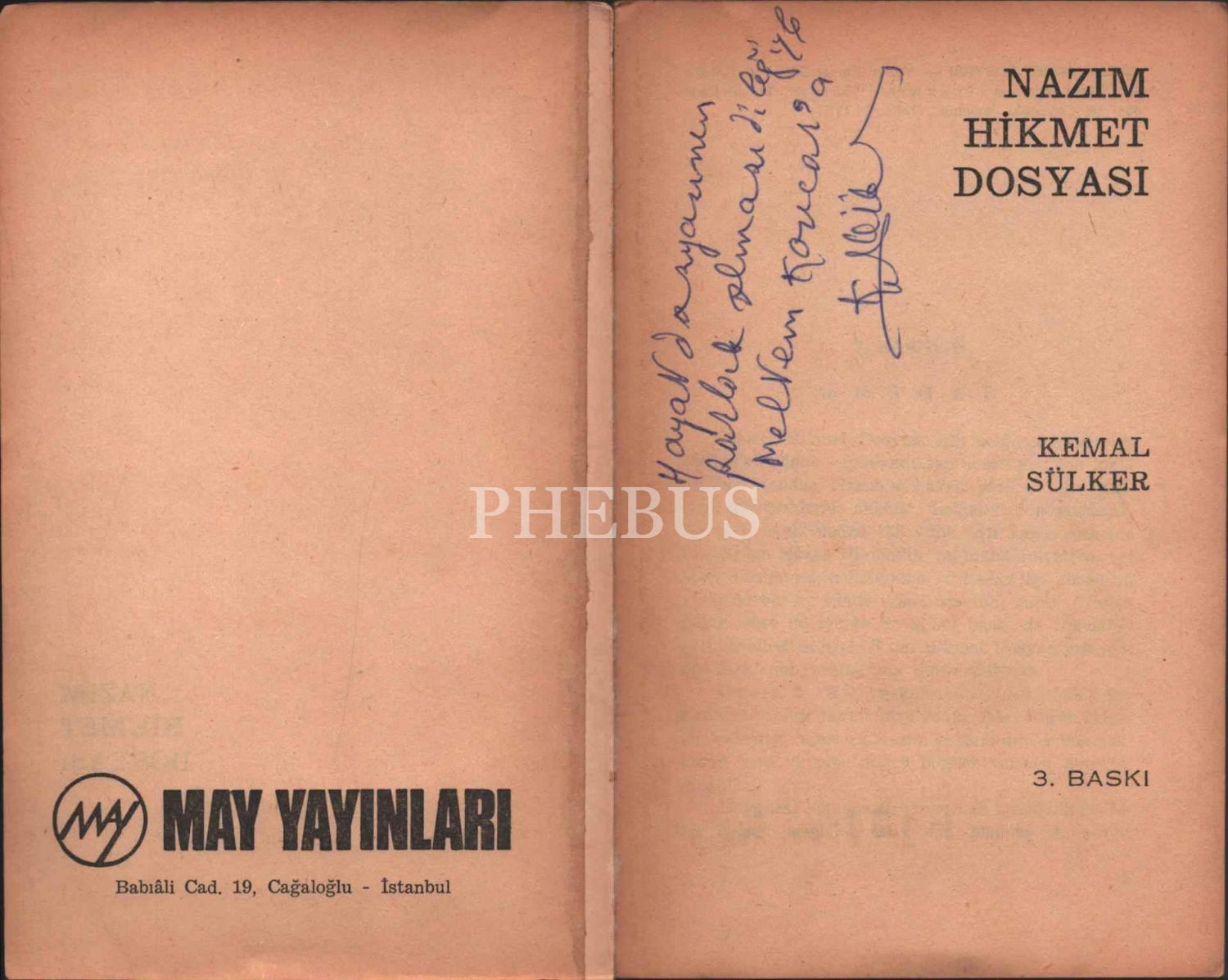 Kemal Sülker´den Meltem Kavcan'a ithaflı ve imzalı NAZIM HİKMET DOSYASI, May Yayınları, Ocak 1974, 271 sayfa, 13x20 cm