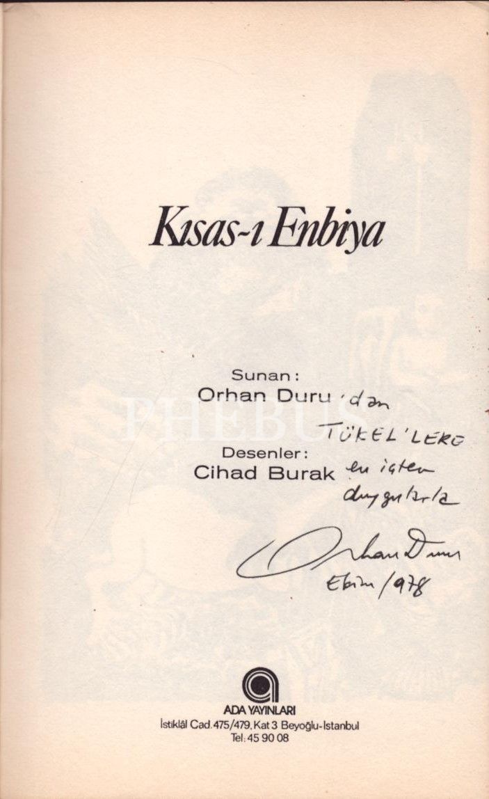 "Sunan" Orhan Duru´dan ithaflı ve imzalı KISAS-I ENBİYA, desenler: Cihad Burak, Ada Yayınları, Nisan 1978, 95 sayfa, 12x20 cm