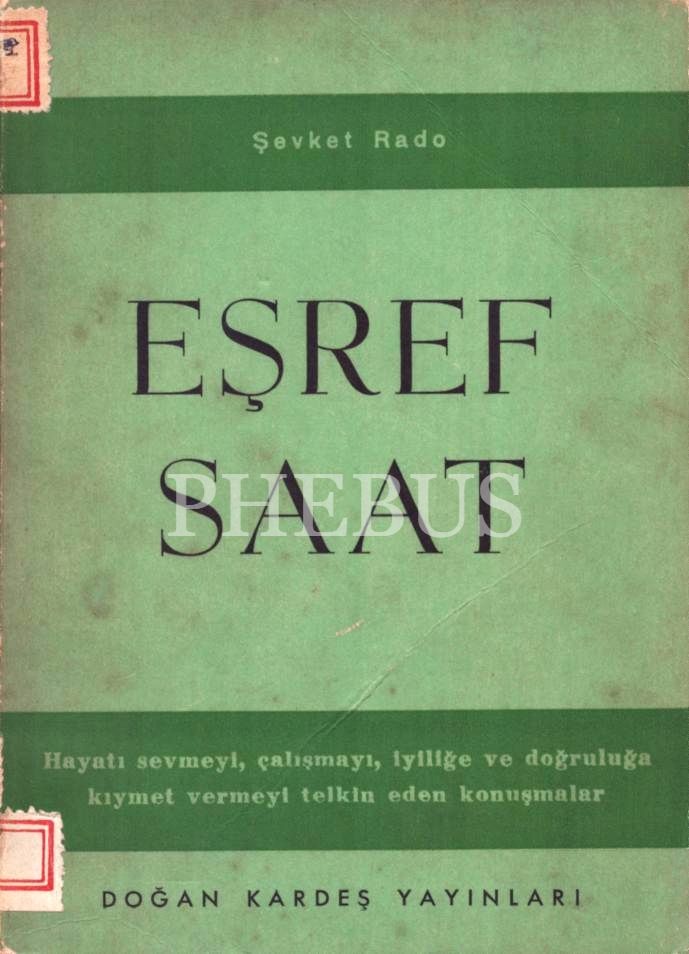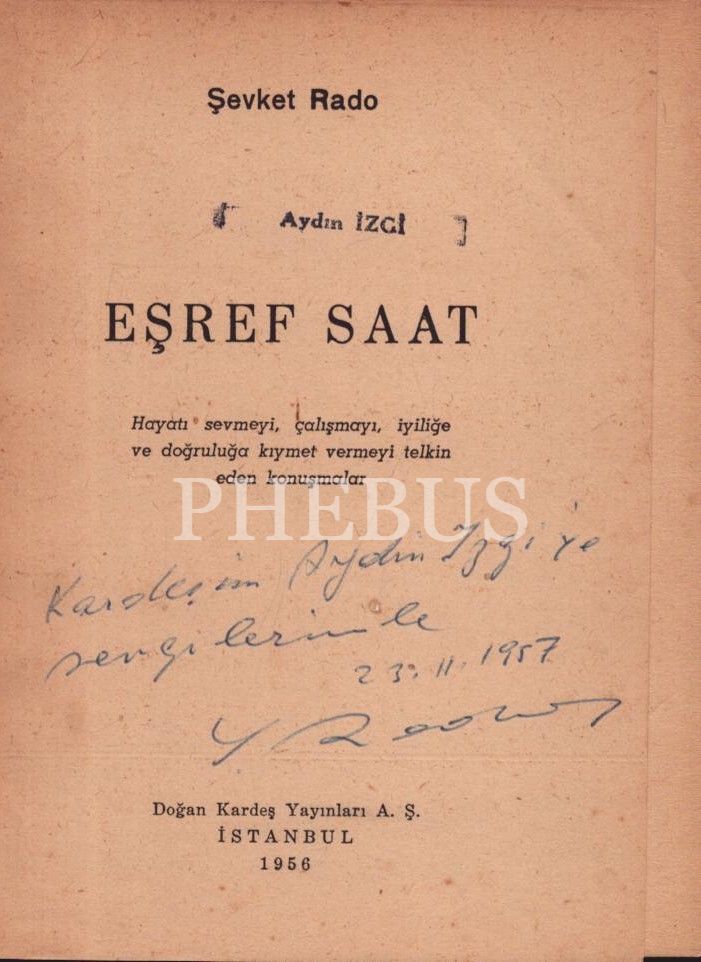 Şevket Rado´dan Aydın İzgi'ye ithaflı ve imzalı EŞREF SAAT, Doğan Kardeş Yayınları A.Ş., İstanbul - 1956, 126 sayfa, 12x16 cm