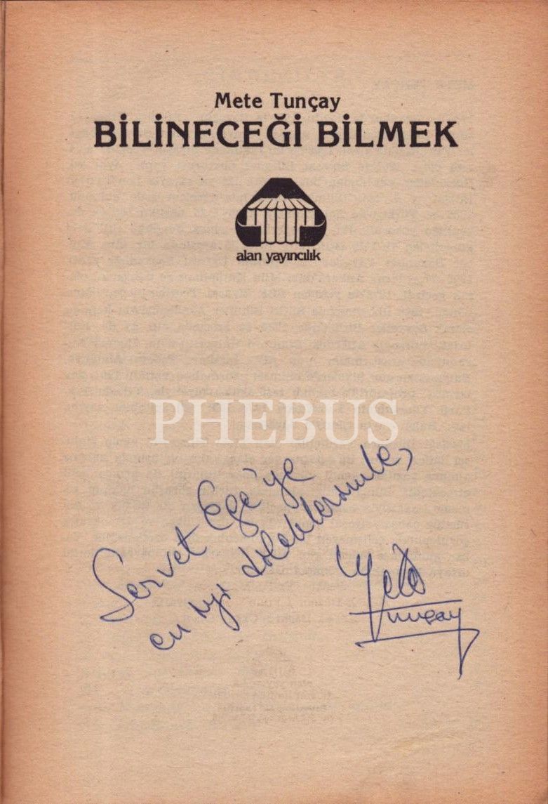 İthaf, "Servet Ege´ye en iyi dileklerimle. Mete Tunçay" şeklindedir.