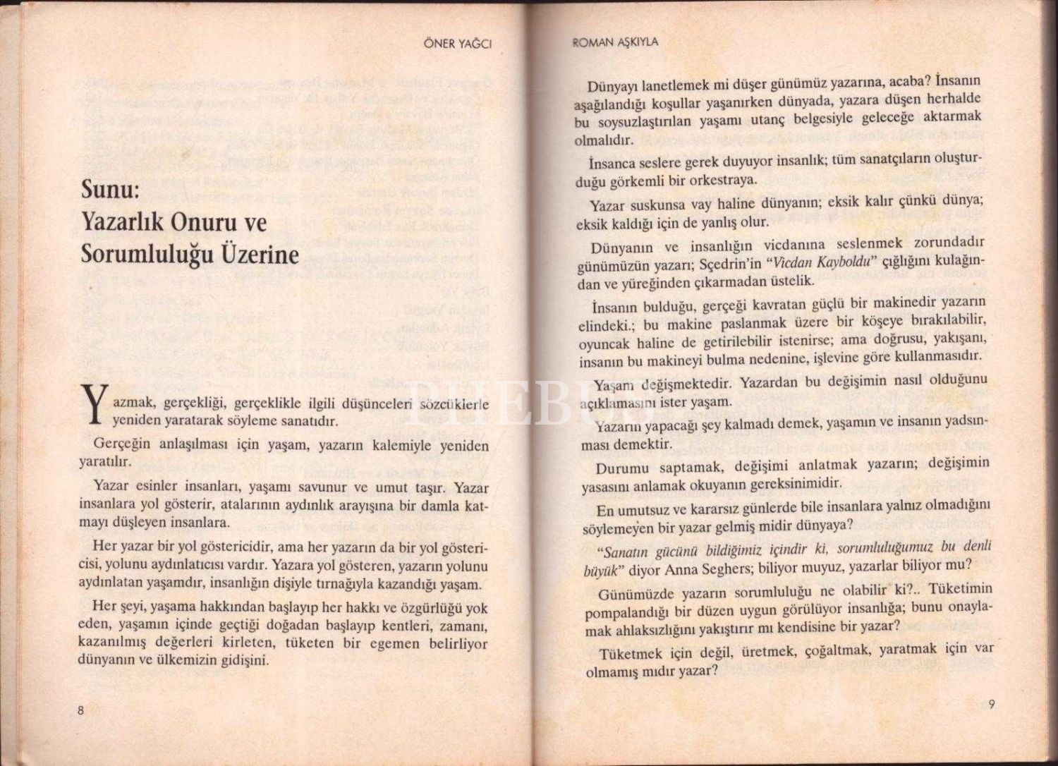 Öner Yağcı´dan Erol Manisalı'ya ithaflı ve imzalı ROMAN AŞKIYLA, İleri Yayınları, Ekim 2006, 363 sayfa, 14x20 cm