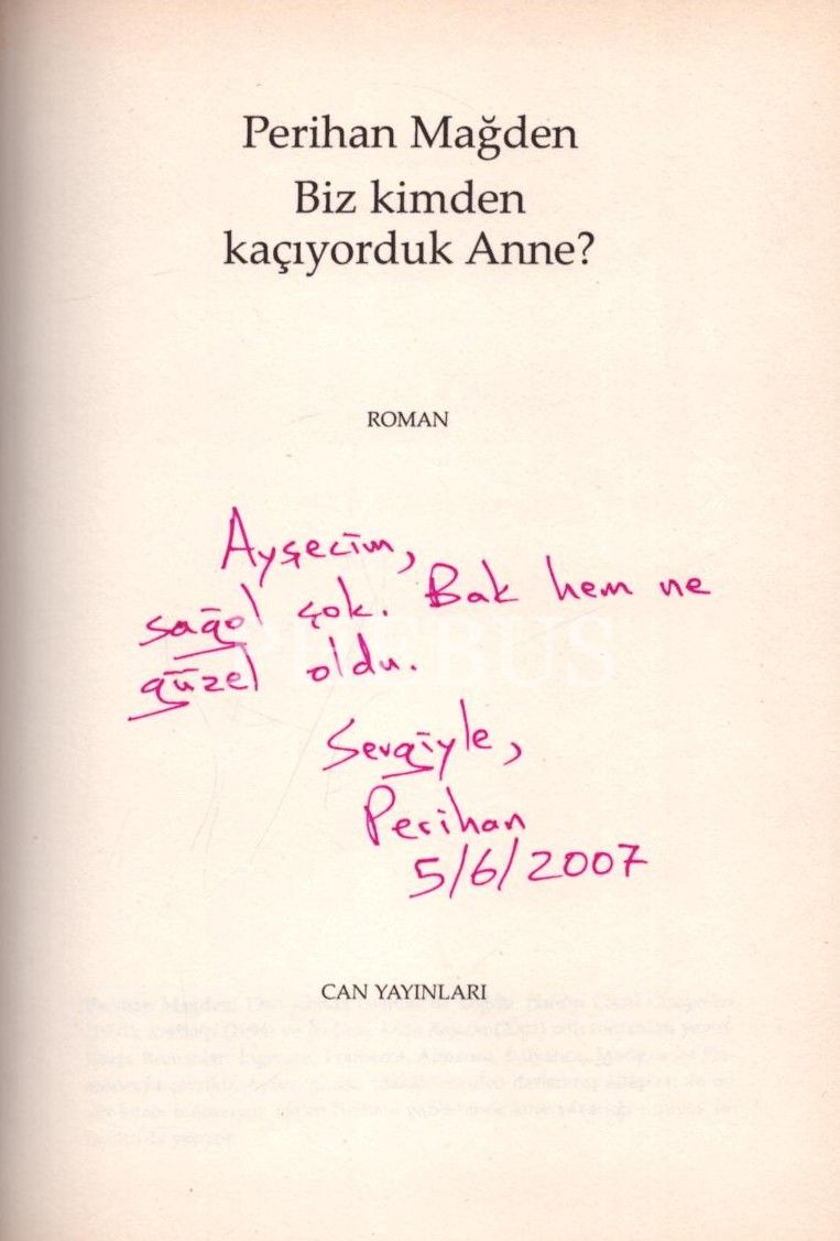 Perihan Mağden´den ithaflı ve imzalı BİZ KİMDEN KAÇIYORDUK ANNE? (Roman), Can Yayınları, Haziran 2007, 181 sayfa, 15x20 cm