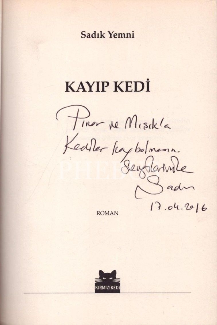 Sadık Yemni´den ithaflı ve imzalı KAYIP KEDİ (Roman), Kırmızı Kedi Yayınevi, 2015, 276 sayfa, 14x20 cm