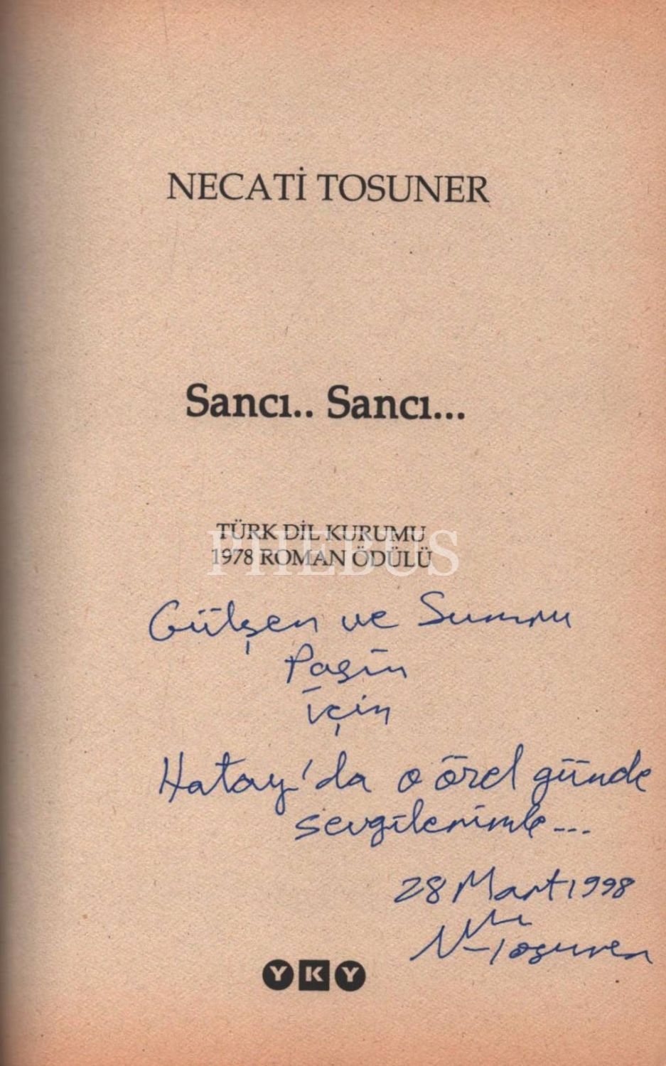 İthaf, "Gülşen ve ? Pasin için Hatay´da o özel günde sevgilerimle... 28 Mart 1998 N. Tosuner" şeklindedir.