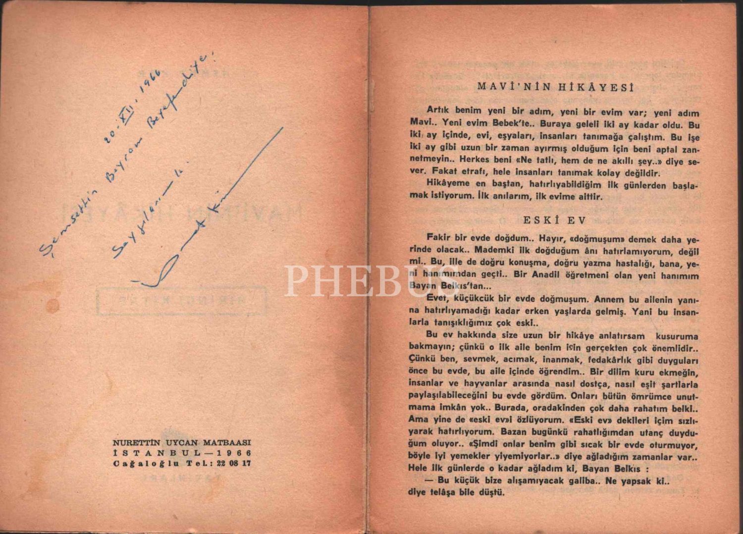 İsmet Kür´den ithaflı ve imzalı MAVİ´NİN HİKÂYESİ (Birinci Kitap), Kür Yayınları, İstanbul - 1966, 120 sayfa, 14x20 cm