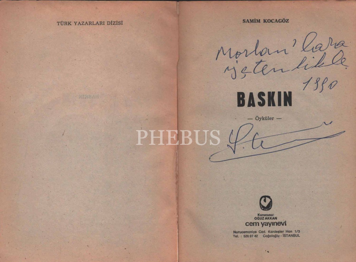 Samim Kocagöz´den ithaflı ve imzalı BASKIN (Öyküler), Cem Yayınevi, İstanbul - 1990, 118 sayfa, 14x20 cm