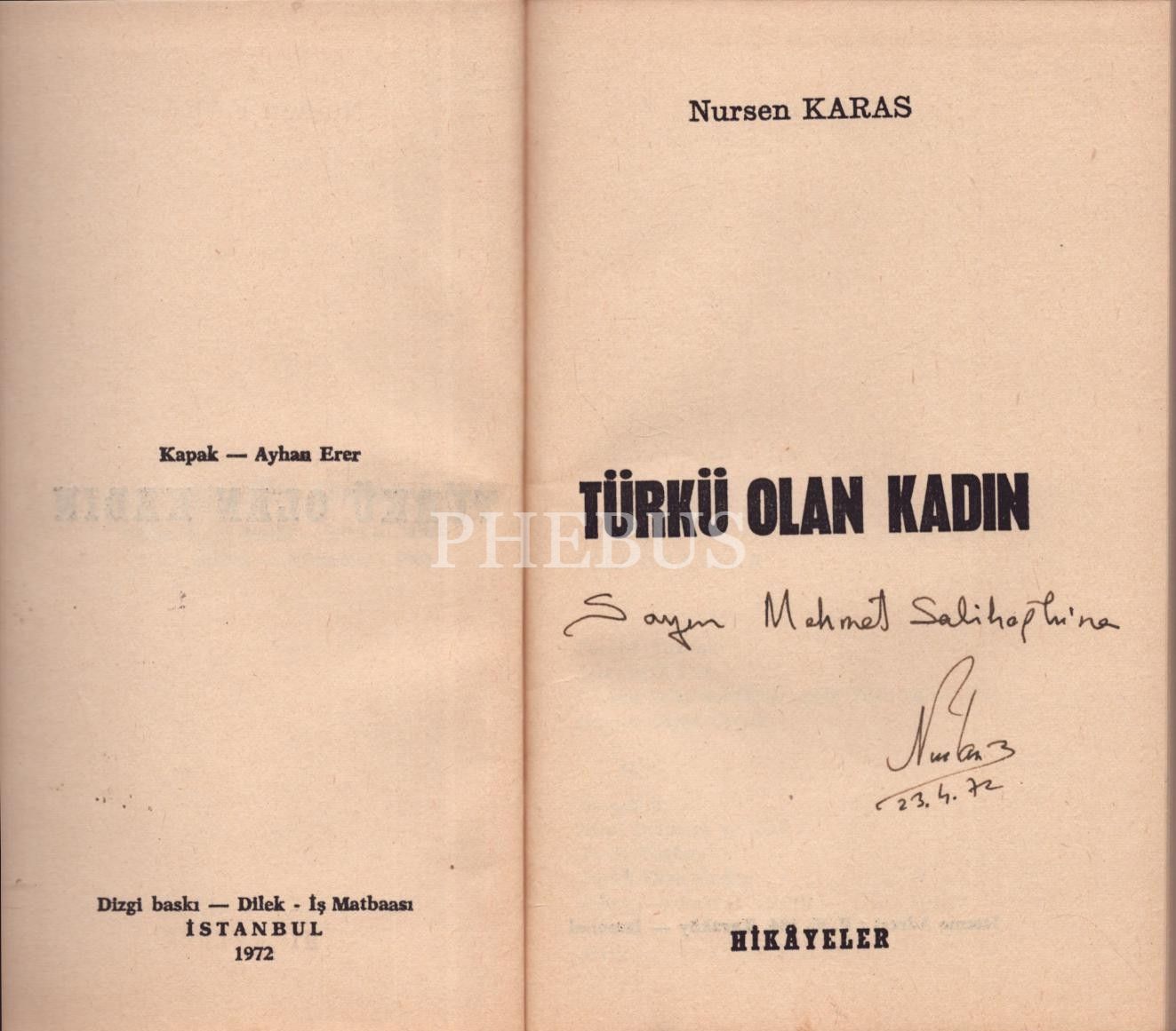 Nurses Karas´tan ithaflı ve imzalı TÜRKÜ OLAN KADIN (Hikâyeler), İstanbul - 1972, 83 sayfa, 13x20 cm
