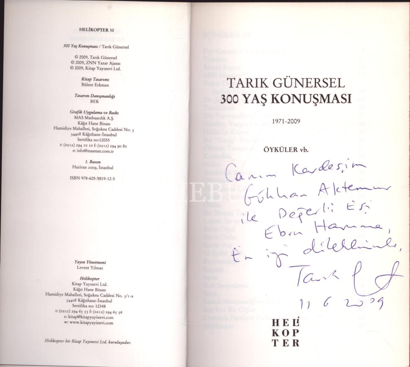 Tarık Günersel´den ithaflı ve imzalı 300 YAŞ KONUŞMASI (1971-2009), Helikopter, İstanbul - Haziran 2009, 242 sayfa, 14x20 cm